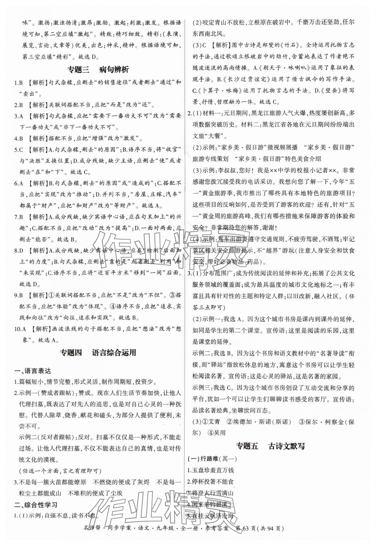注:目前有些书本章节名称可能整理的还不是很完善,但都是按照顺序排列的,请同学们按照顺序仔细查找。练习册 2024年名师帮同步学案九年级语文全一册人教版 答案主要是用来给同学们做完题方便对答案用的,请勿直接抄袭。