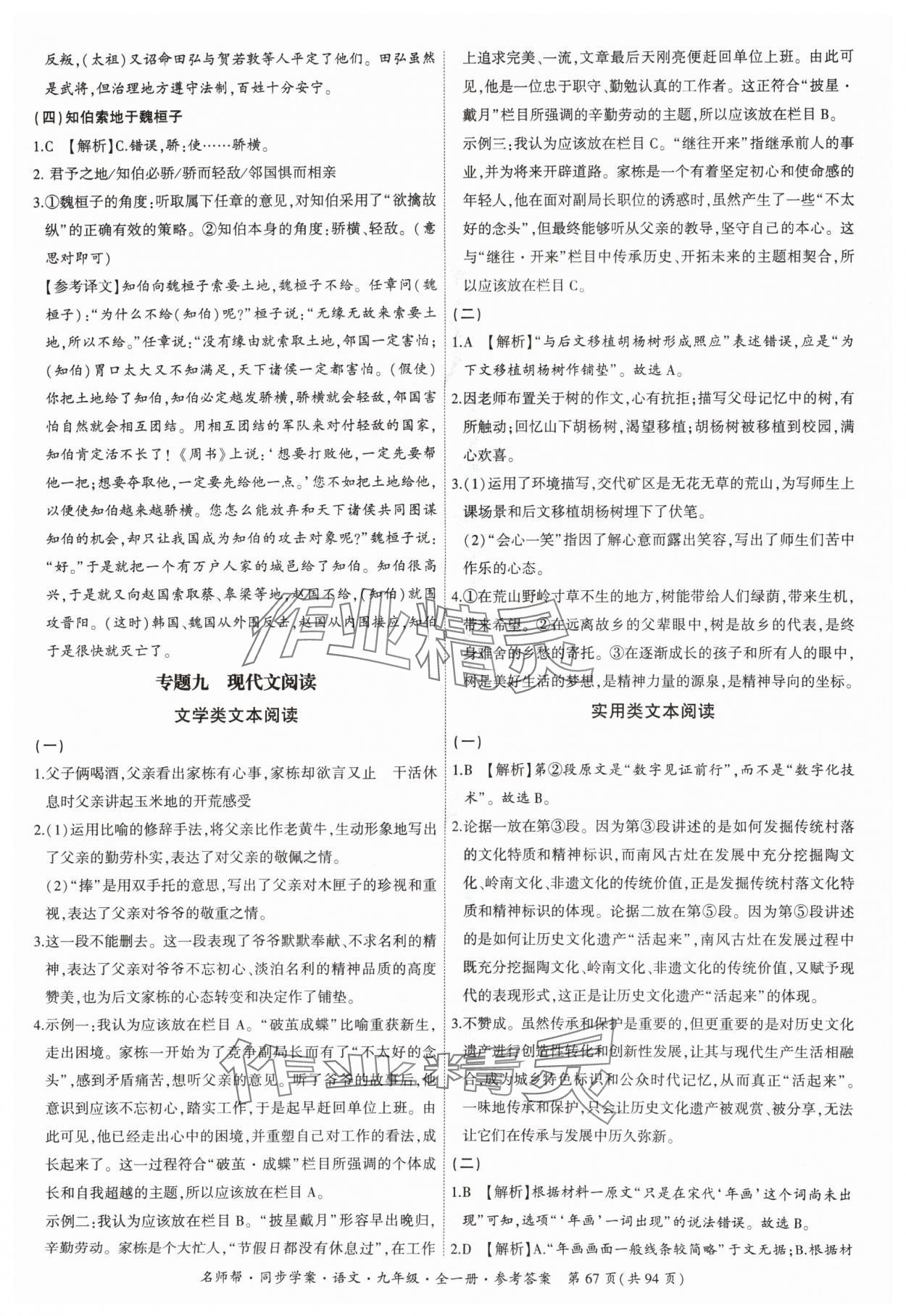 注:目前有些书本章节名称可能整理的还不是很完善,但都是按照顺序排列的,请同学们按照顺序仔细查找。练习册 2024年名师帮同步学案九年级语文全一册人教版 答案主要是用来给同学们做完题方便对答案用的,请勿直接抄袭。