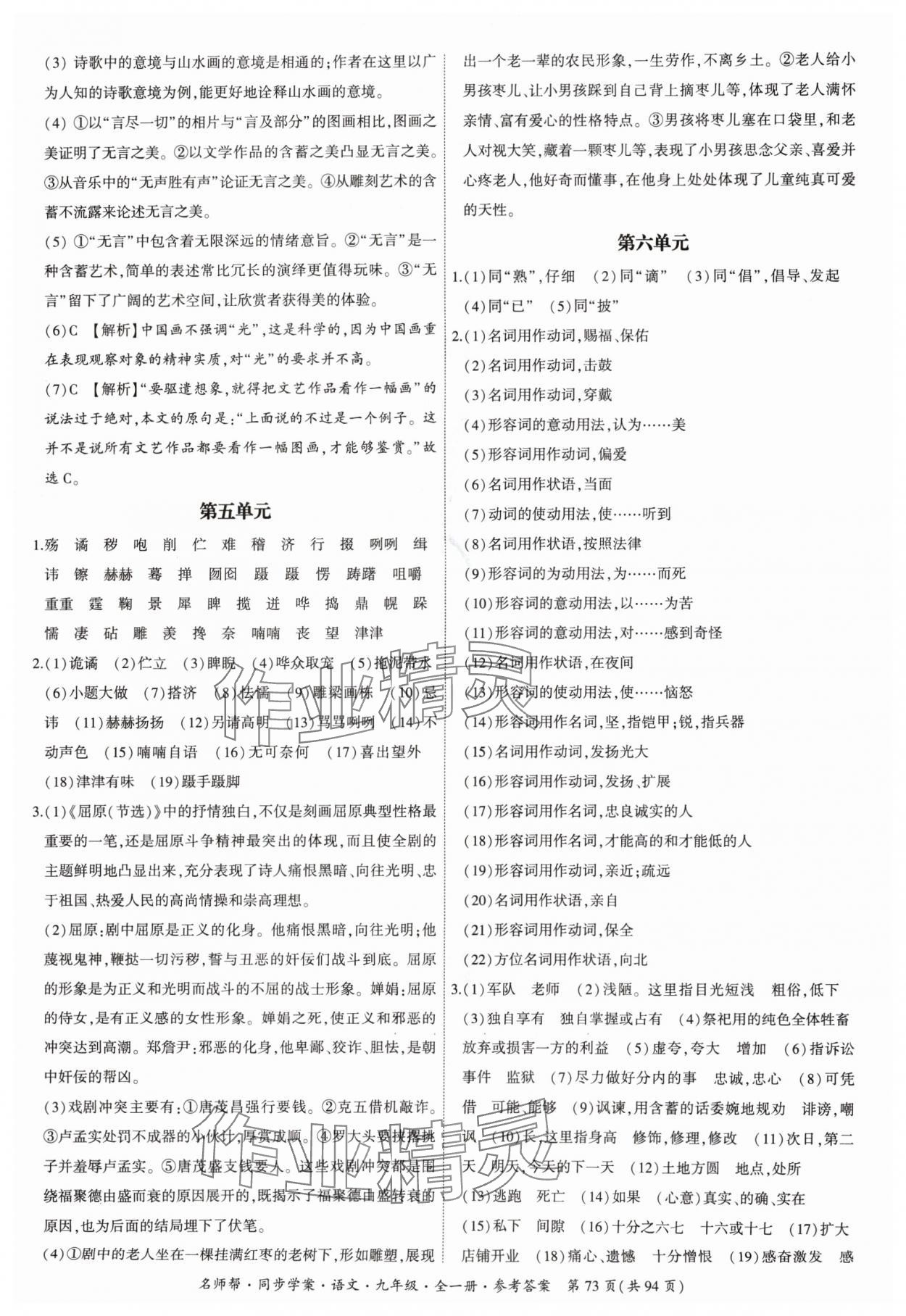注:目前有些书本章节名称可能整理的还不是很完善,但都是按照顺序排列的,请同学们按照顺序仔细查找。练习册 2024年名师帮同步学案九年级语文全一册人教版 答案主要是用来给同学们做完题方便对答案用的,请勿直接抄袭。