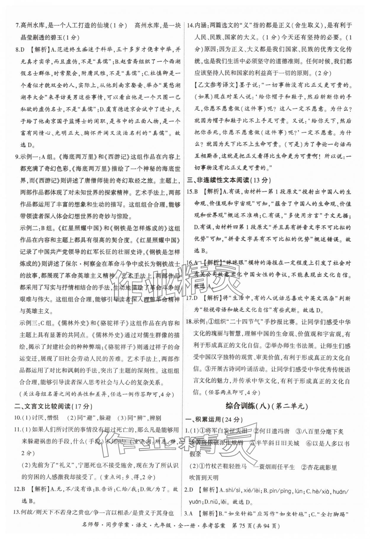 - 参考答案第75页