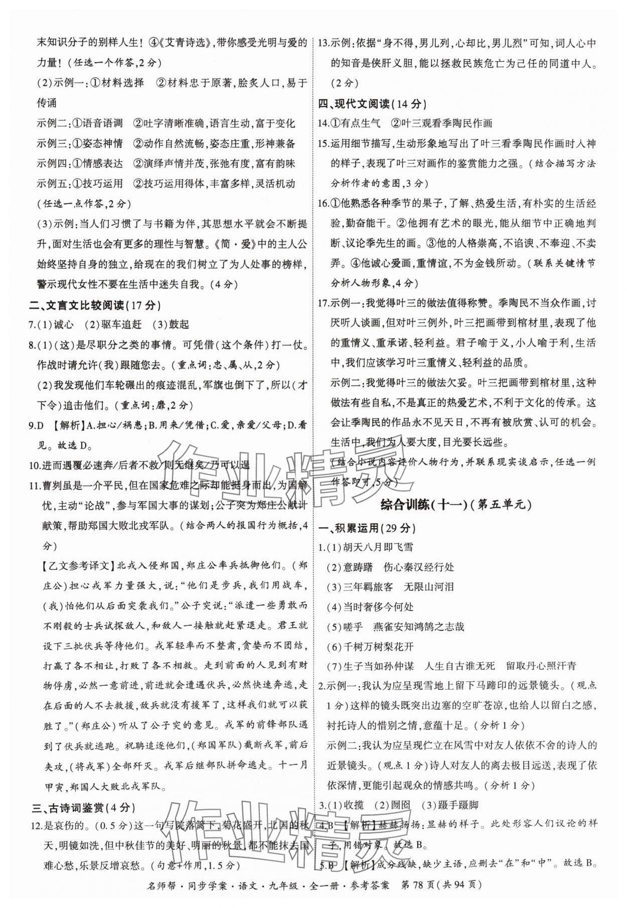 《2024年名师帮同步学案九年级语文全一册人教版》