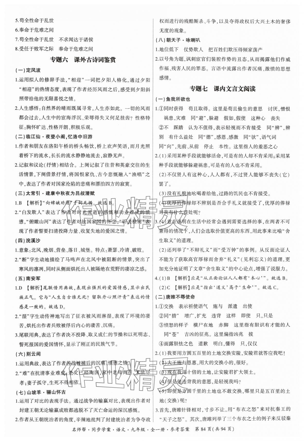 注:目前有些书本章节名称可能整理的还不是很完善,但都是按照顺序排列的,请同学们按照顺序仔细查找。练习册 2024年名师帮同步学案九年级语文全一册人教版 答案主要是用来给同学们做完题方便对答案用的,请勿直接抄袭。