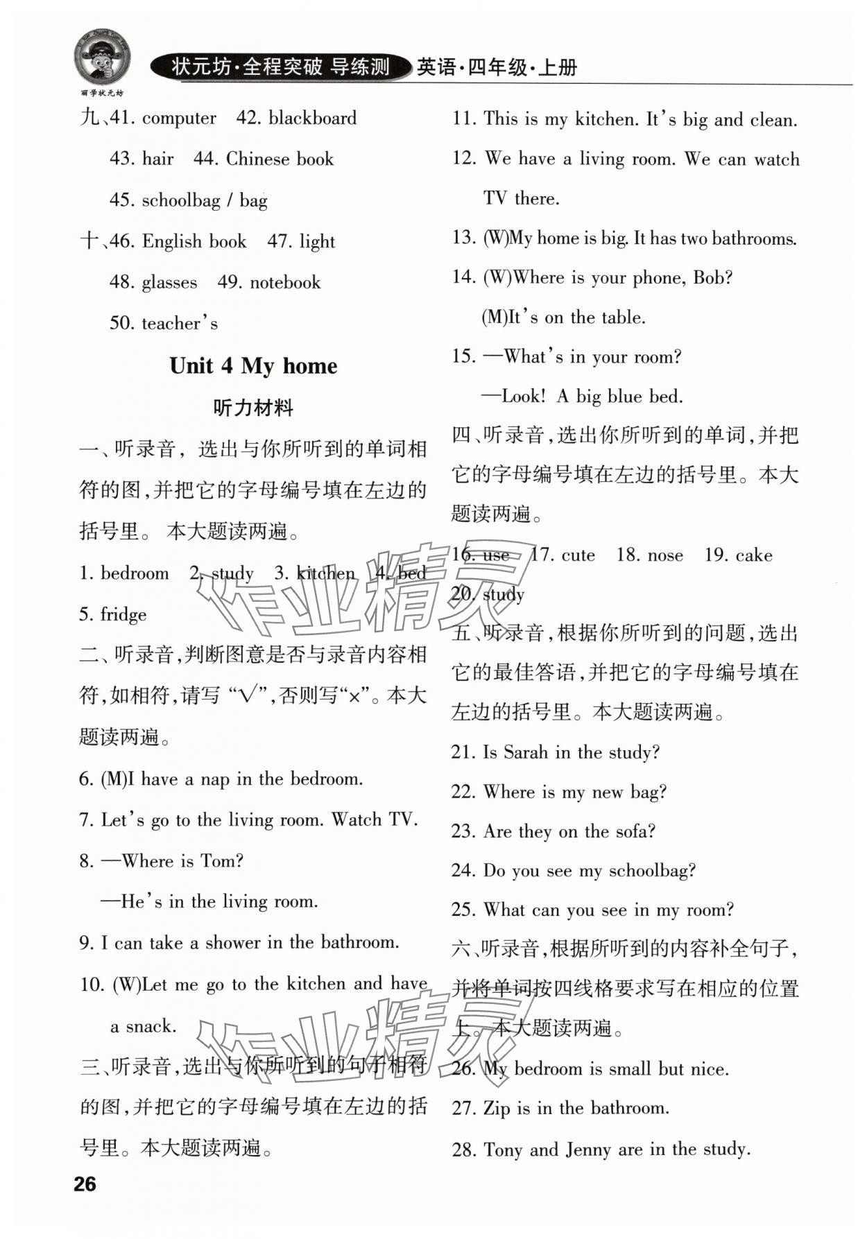 2024年状元坊全程突破导练测四年级英语上册人教版顺德专版