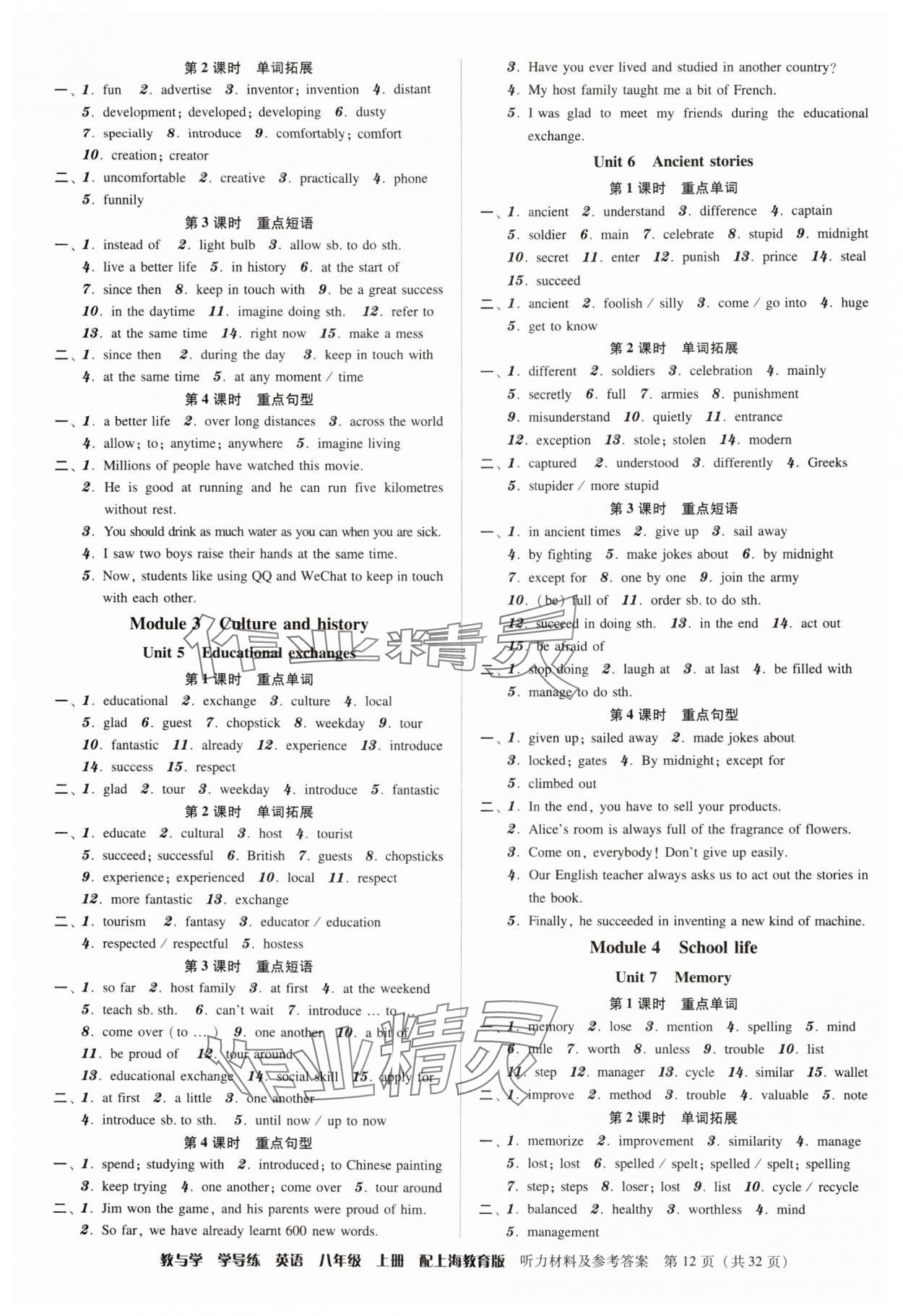 注:目前有些书本章节名称可能整理的还不是很完善,但都是按照顺序排列的,请同学们按照顺序仔细查找。练习册 2024年教与学学导练八年级英语上册沪教版 答案主要是用来给同学们做完题方便对答案用的,请勿直接抄袭。