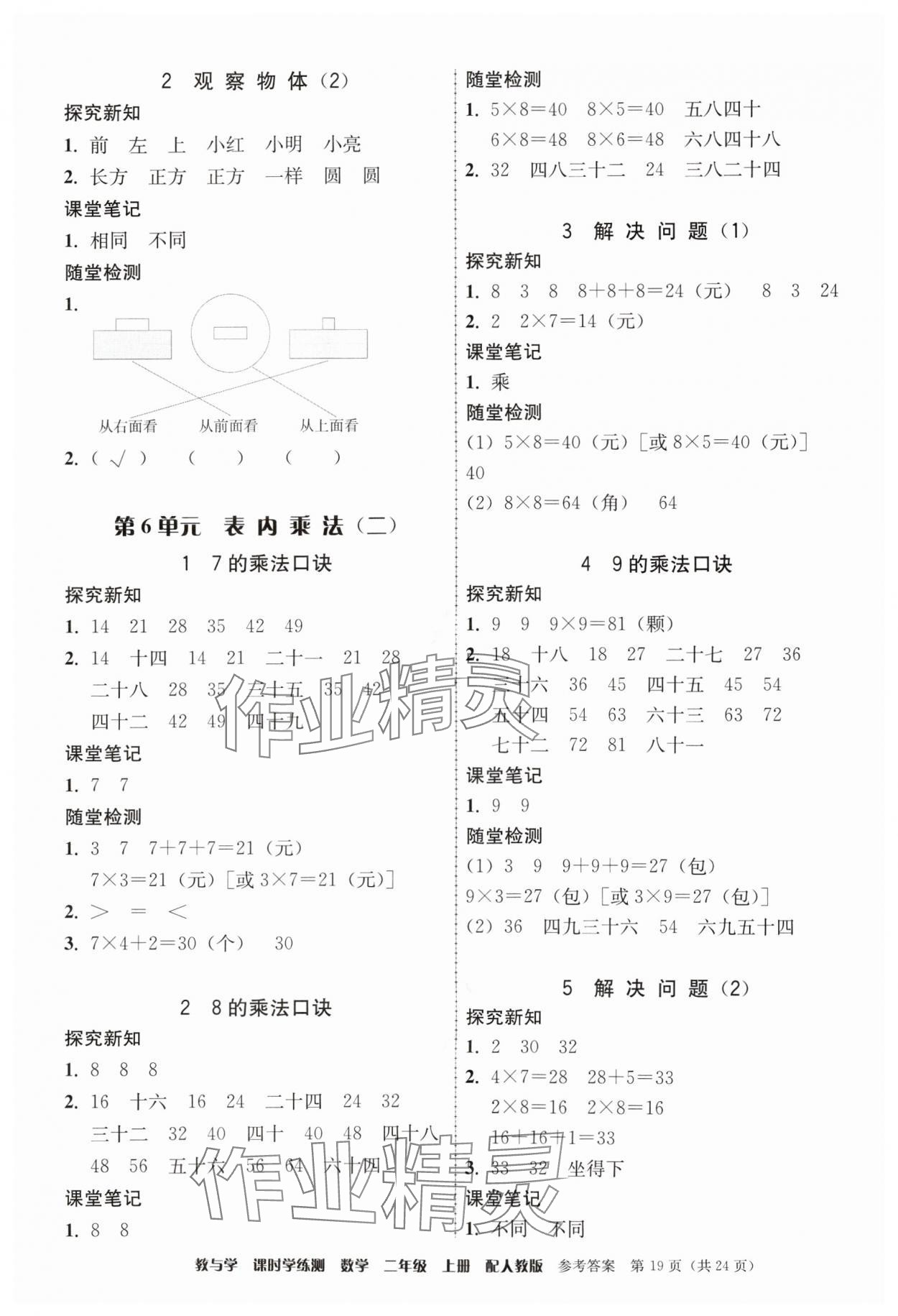 2024年教与学课时学练测二年级数学上册人教版