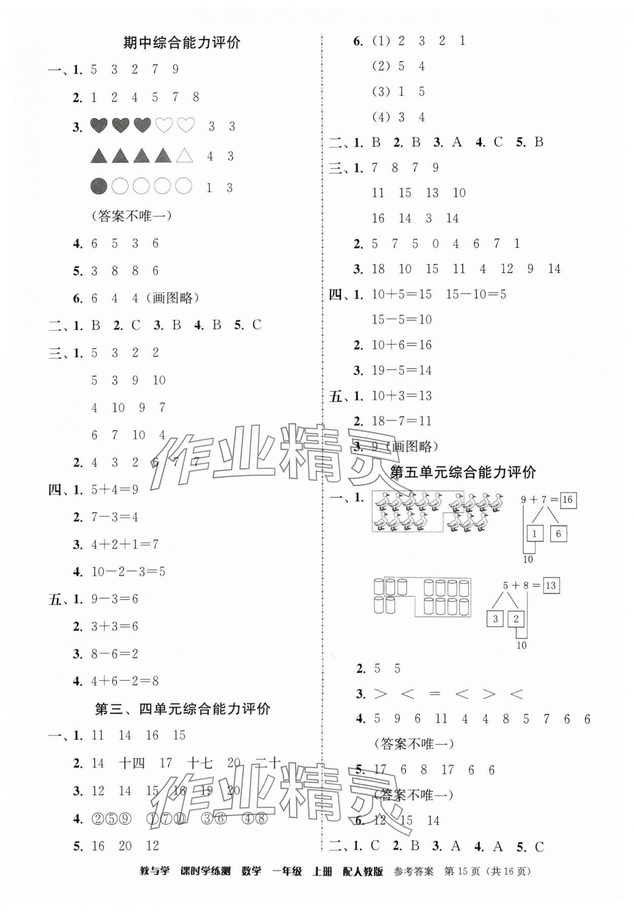 注:目前有些书本章节名称可能整理的还不是很完善,但都是按照顺序排列的,请同学们按照顺序仔细查找。练习册 2024年教与学课时学练测一年级数学上册人教版 答案主要是用来给同学们做完题方便对答案用的,请勿直接抄袭。