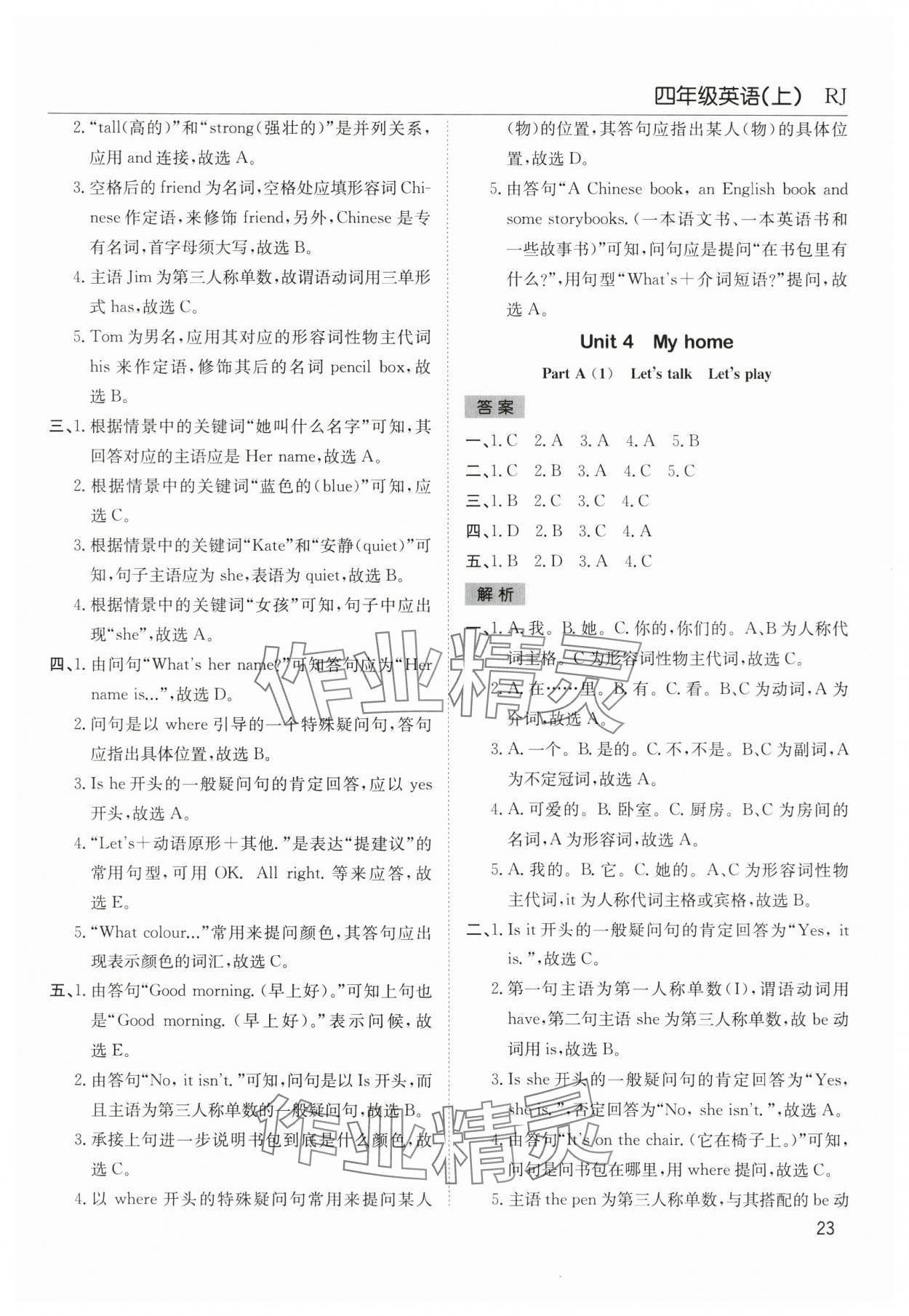 注:目前有些书本章节名称可能整理的还不是很完善,但都是按照顺序排列的,请同学们按照顺序仔细查找。练习册 2024年阳光课堂课时作业四年级英语上册人教版 答案主要是用来给同学们做完题方便对答案用的,请勿直接抄袭。