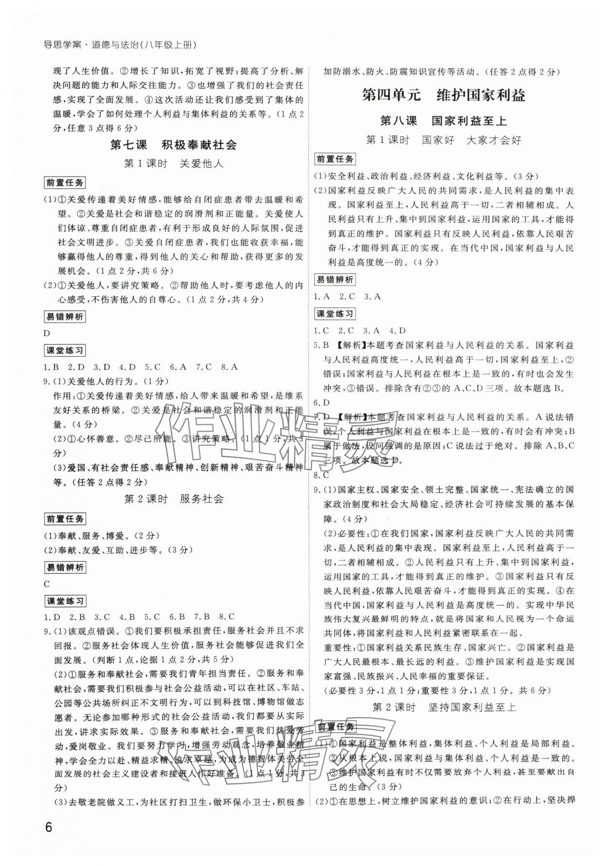 注:目前有些书本章节名称可能整理的还不是很完善,但都是按照顺序排列的,请同学们按照顺序仔细查找。练习册 2024年导思学案八年级道德与法治上册人教版深圳专版 答案主要是用来给同学们做完题方便对答案用的,请勿直接抄袭。