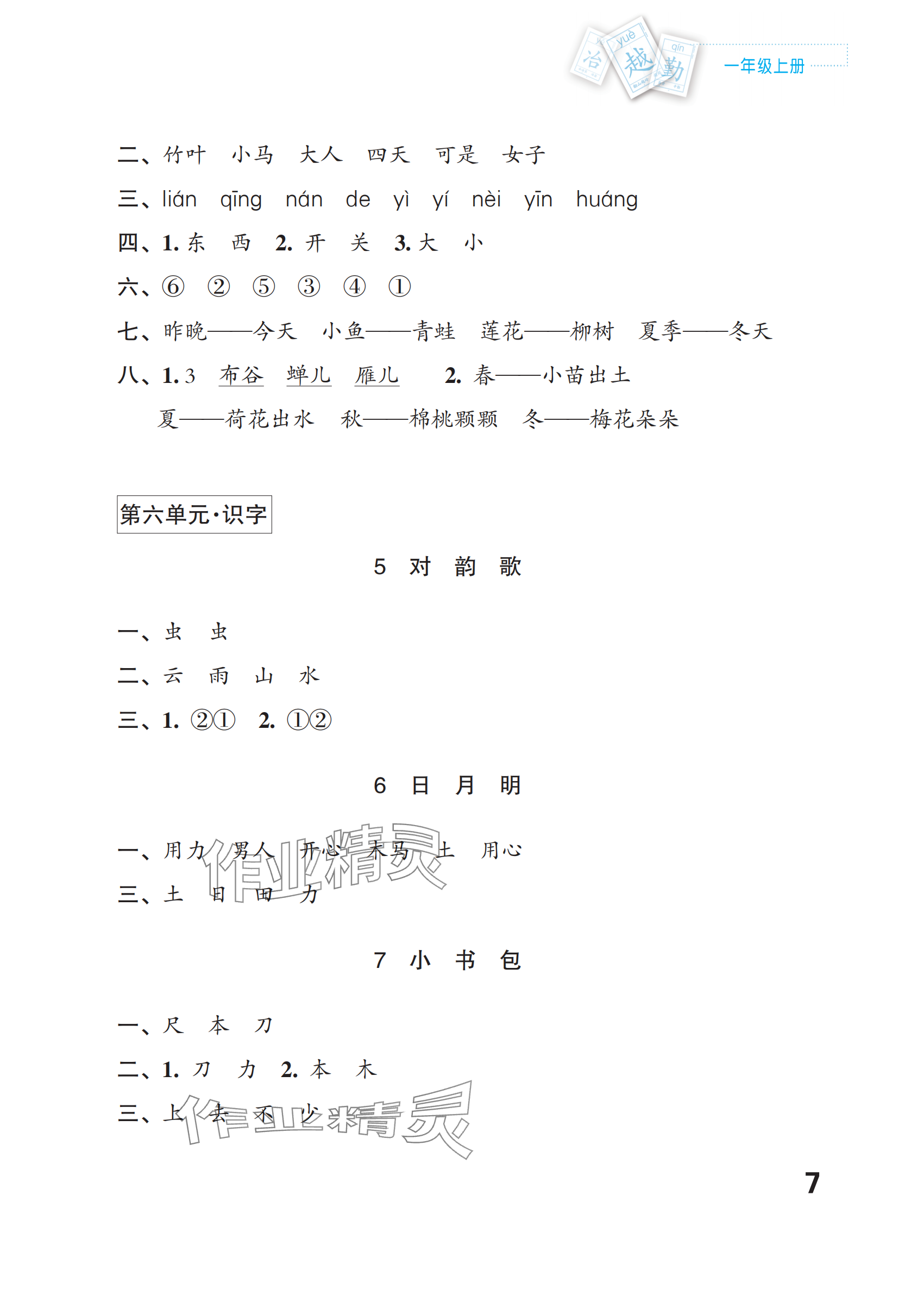 注:目前有些书本章节名称可能整理的还不是很完善,但都是按照顺序排列的,请同学们按照顺序仔细查找。练习册 2024年练习与测试一年级语文上册人教版福建专版 答案主要是用来给同学们做完题方便对答案用的,请勿直接抄袭。