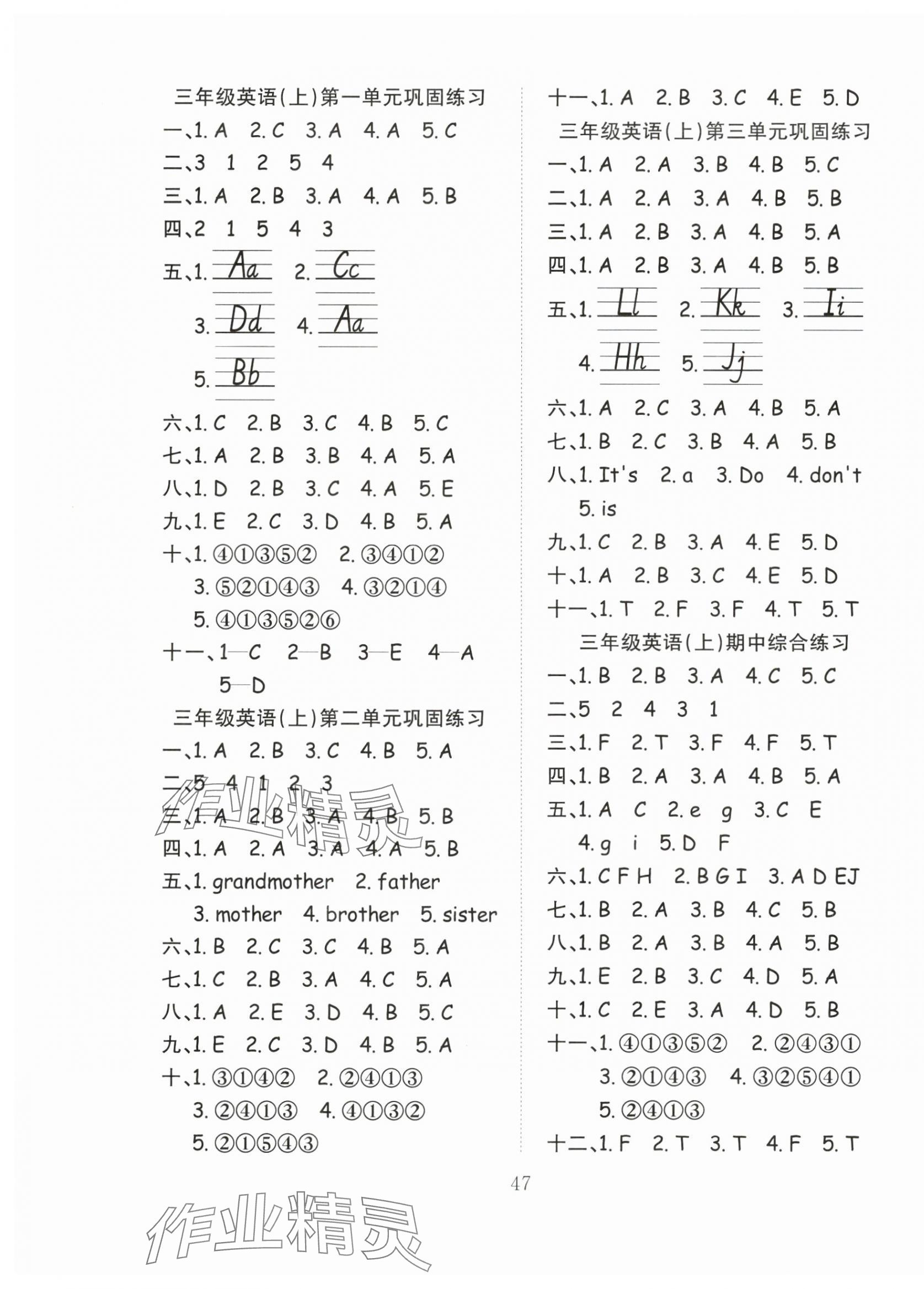 注:目前有些书本章节名称可能整理的还不是很完善,但都是按照顺序排列的,请同学们按照顺序仔细查找。练习册 2024年阳光课堂课时作业三年级英语上册人教版 答案主要是用来给同学们做完题方便对答案用的,请勿直接抄袭。