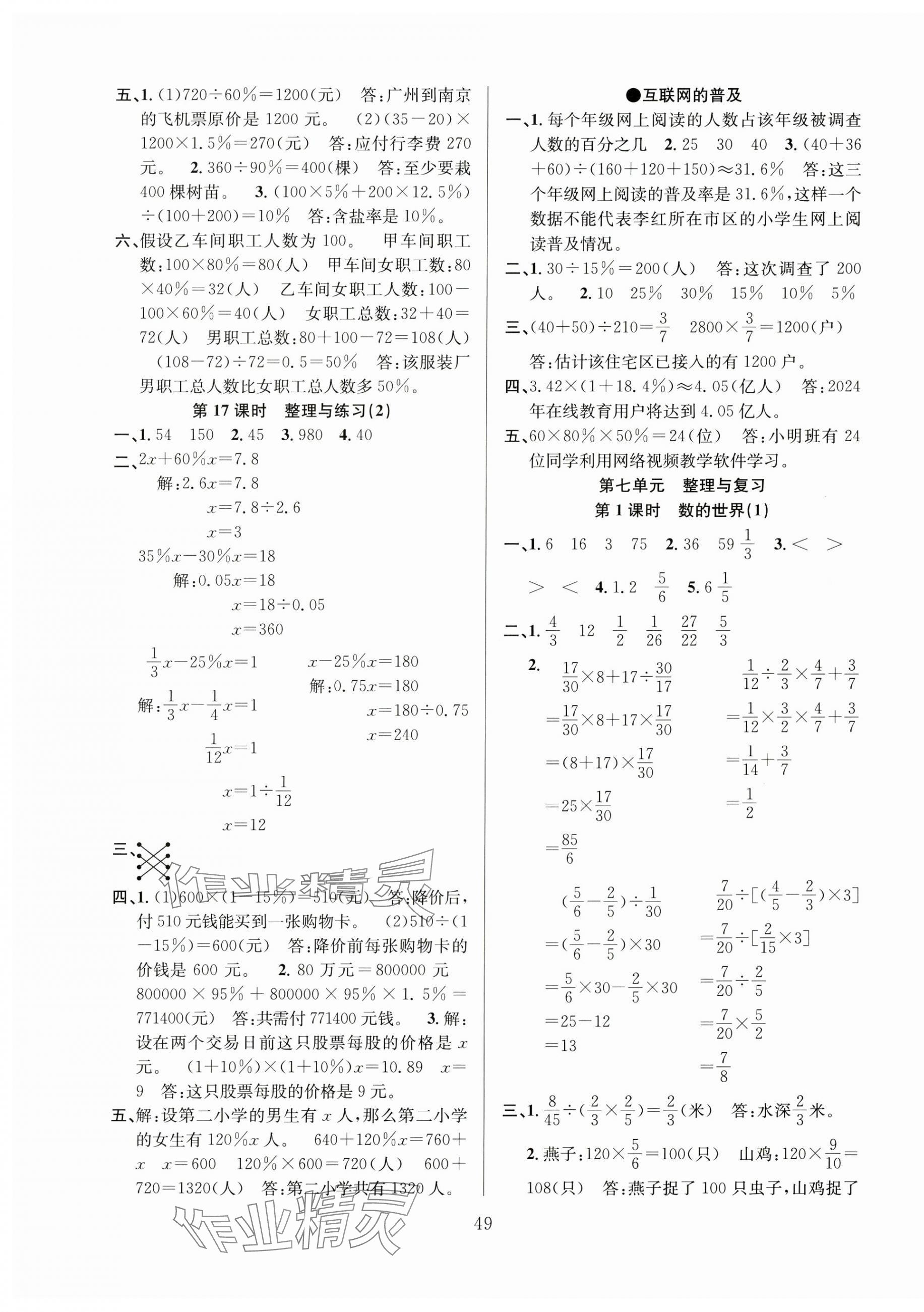 注:目前有些书本章节名称可能整理的还不是很完善,但都是按照顺序排列的,请同学们按照顺序仔细查找。练习册 2024年阳光课堂课时作业六年级数学上册苏教版 答案主要是用来给同学们做完题方便对答案用的,请勿直接抄袭。