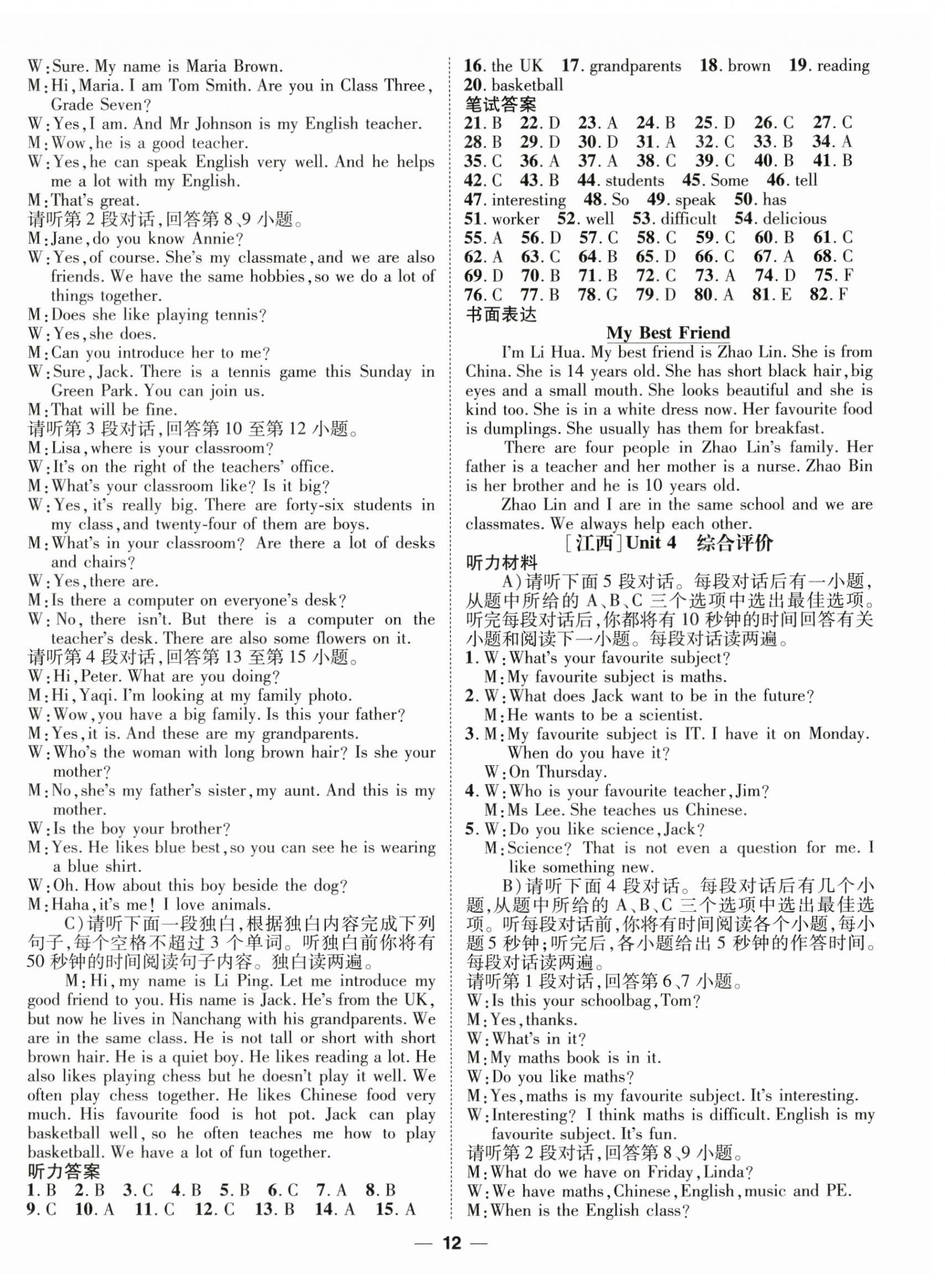 注:目前有些书本章节名称可能整理的还不是很完善,但都是按照顺序排列的,请同学们按照顺序仔细查找。练习册 2024年名师测控七年级英语上册人教版江西专版 答案主要是用来给同学们做完题方便对答案用的,请勿直接抄袭。
