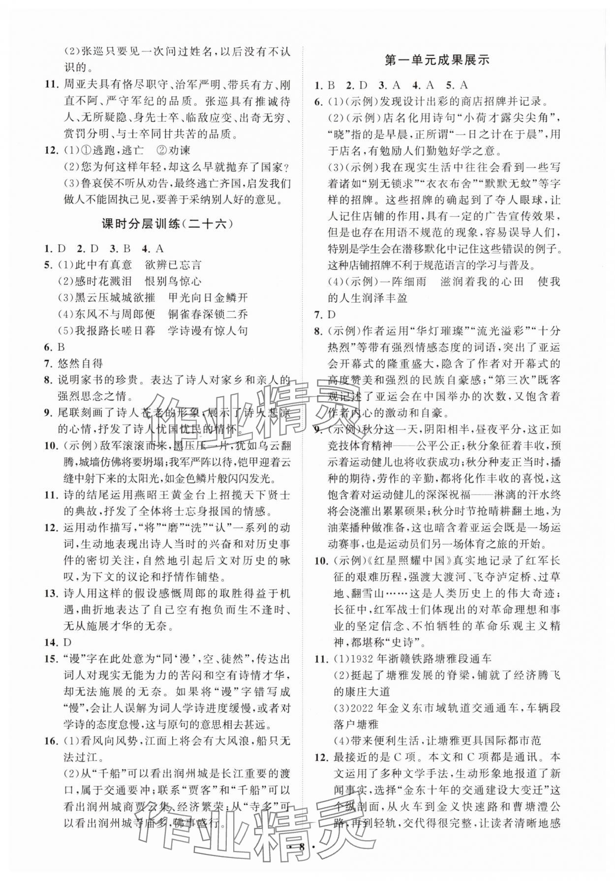 2024年同步练习册分层卷八年级语文上册人教版54制