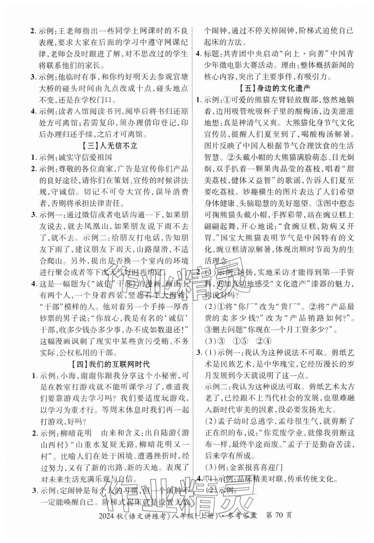 - 参考答案第70页
