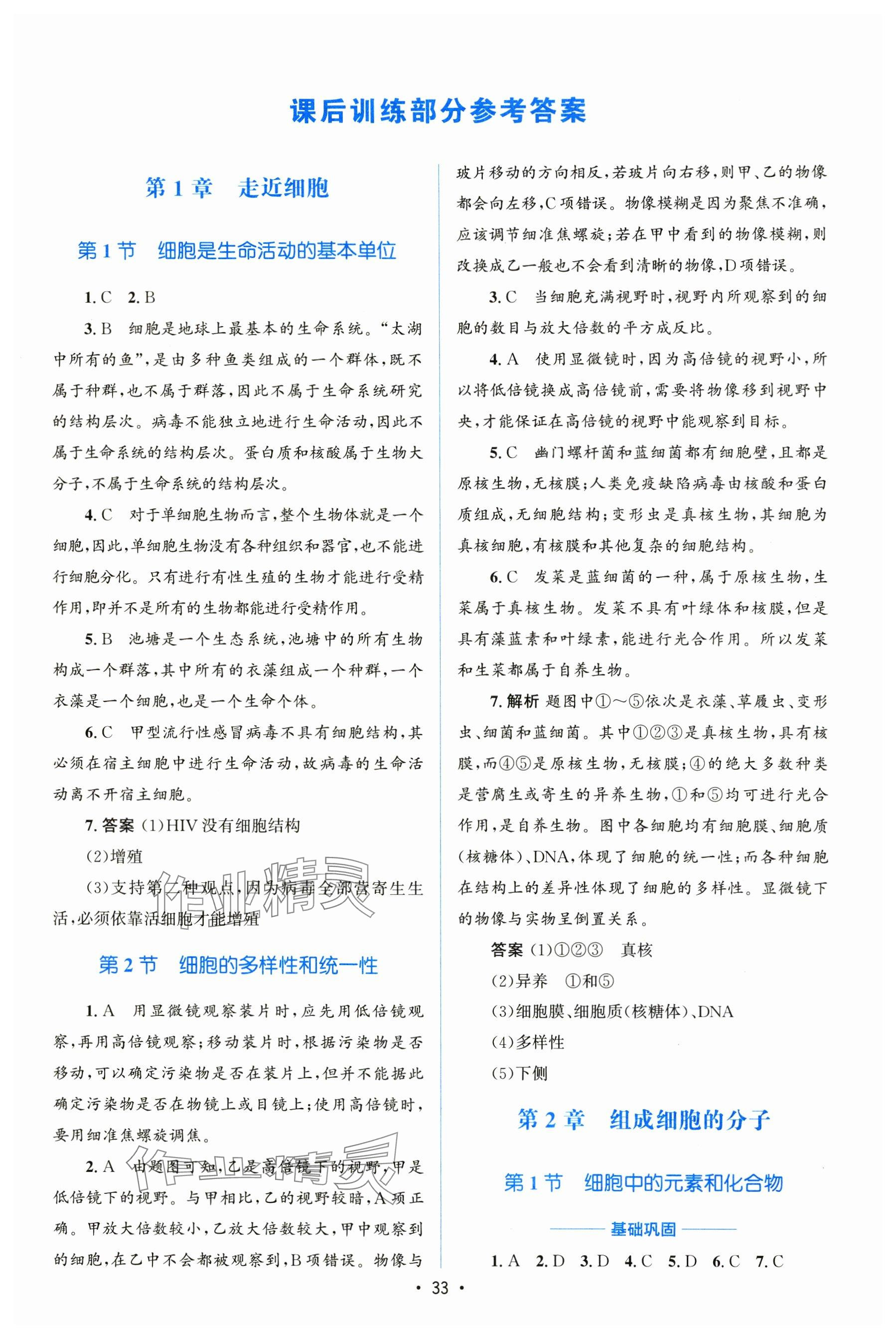 注:目前有些书本章节名称可能整理的还不是很完善,但都是按照顺序排列的,请同学们按照顺序仔细查找。练习册 2024年高中同步测控优化设计(分子与细胞)高中生物必修1人教版增强版 答案主要是用来给同学们做完题方便对答案用的,请勿直接抄袭。