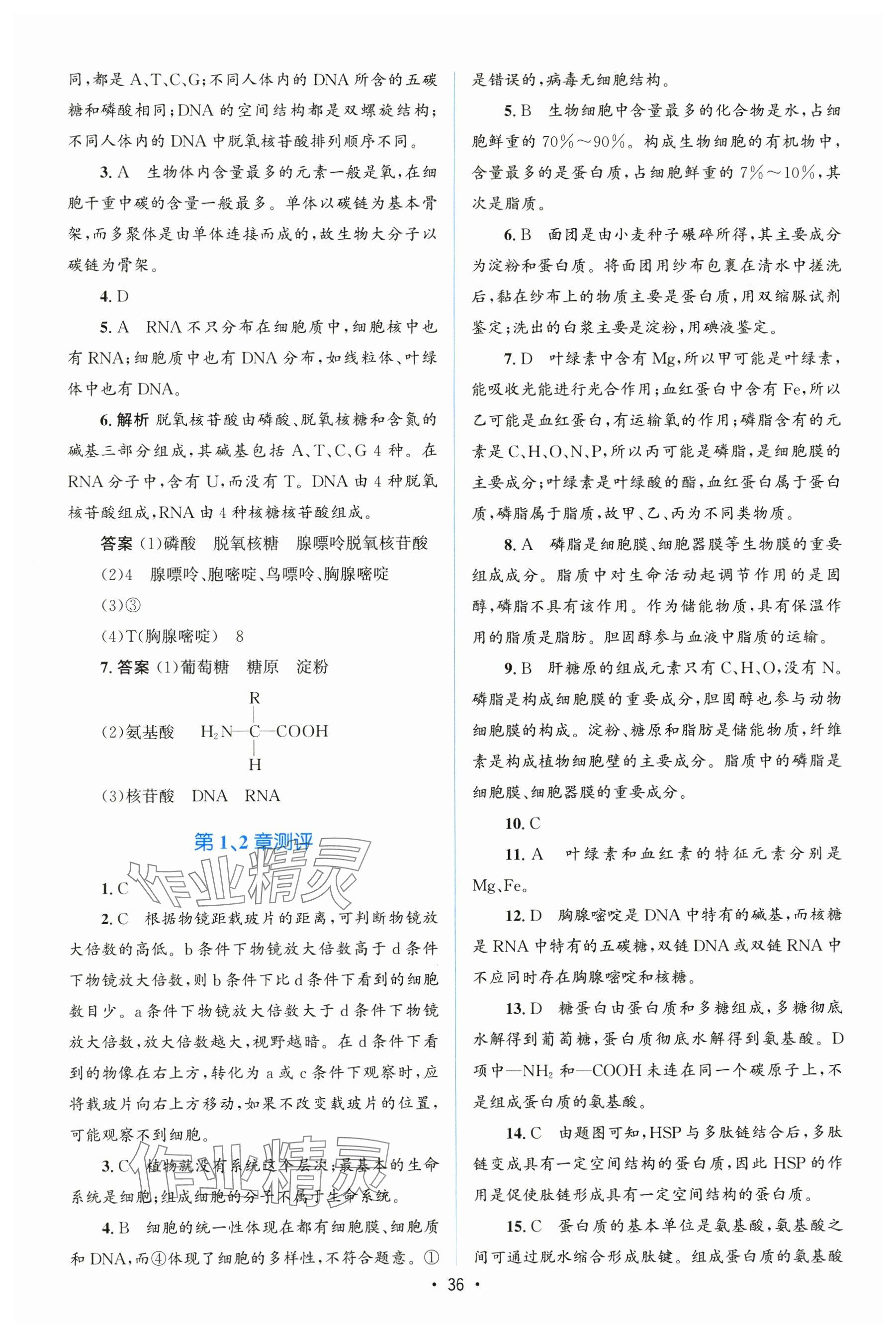 注:目前有些书本章节名称可能整理的还不是很完善,但都是按照顺序排列的,请同学们按照顺序仔细查找。练习册 2024年高中同步测控优化设计(分子与细胞)高中生物必修1人教版增强版 答案主要是用来给同学们做完题方便对答案用的,请勿直接抄袭。
