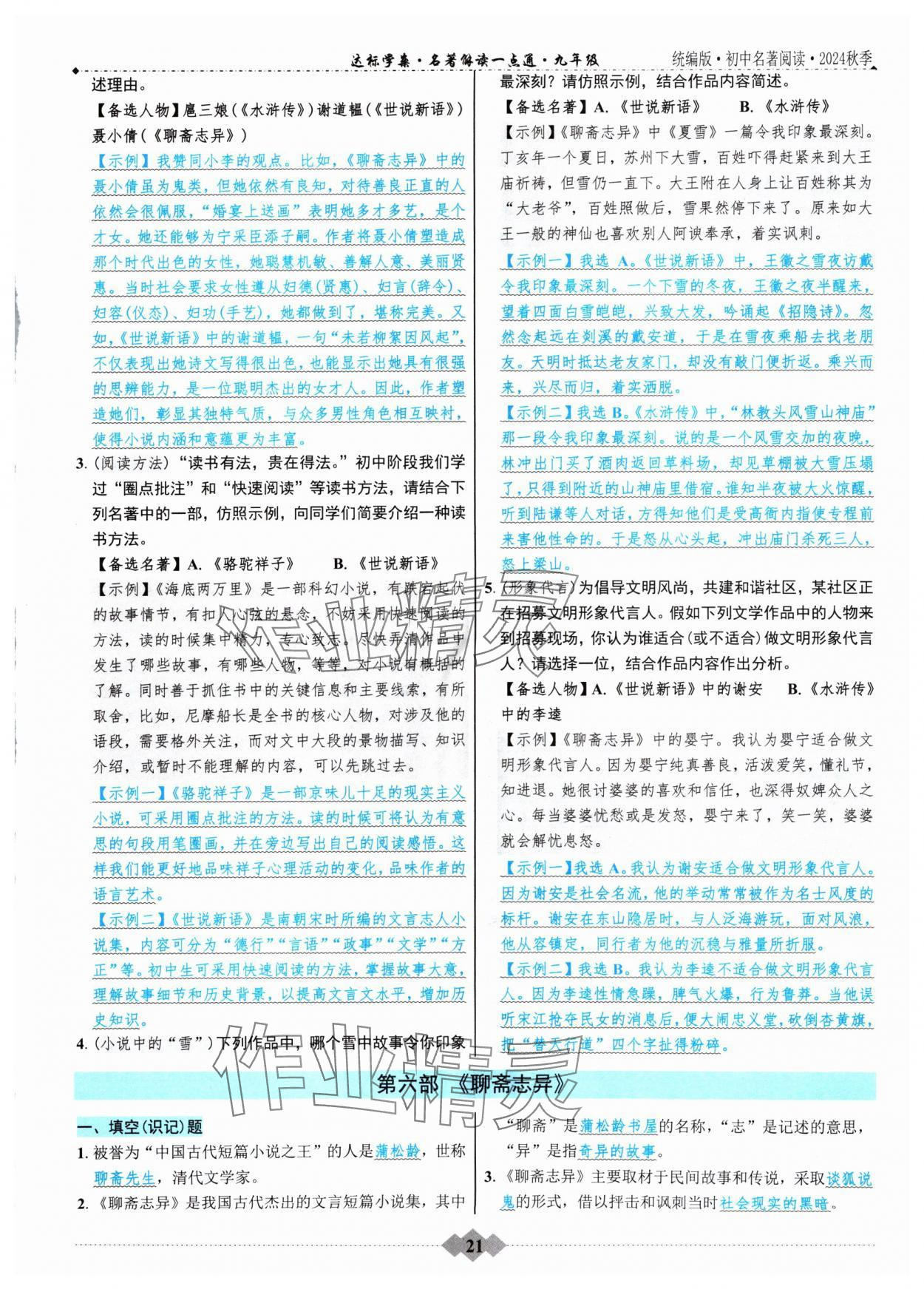 注:目前有些书本章节名称可能整理的还不是很完善,但都是按照顺序排列的,请同学们按照顺序仔细查找。练习册 2024年达标学案名著解读一点通九年级语文全一册人教版 答案主要是用来给同学们做完题方便对答案用的,请勿直接抄袭。