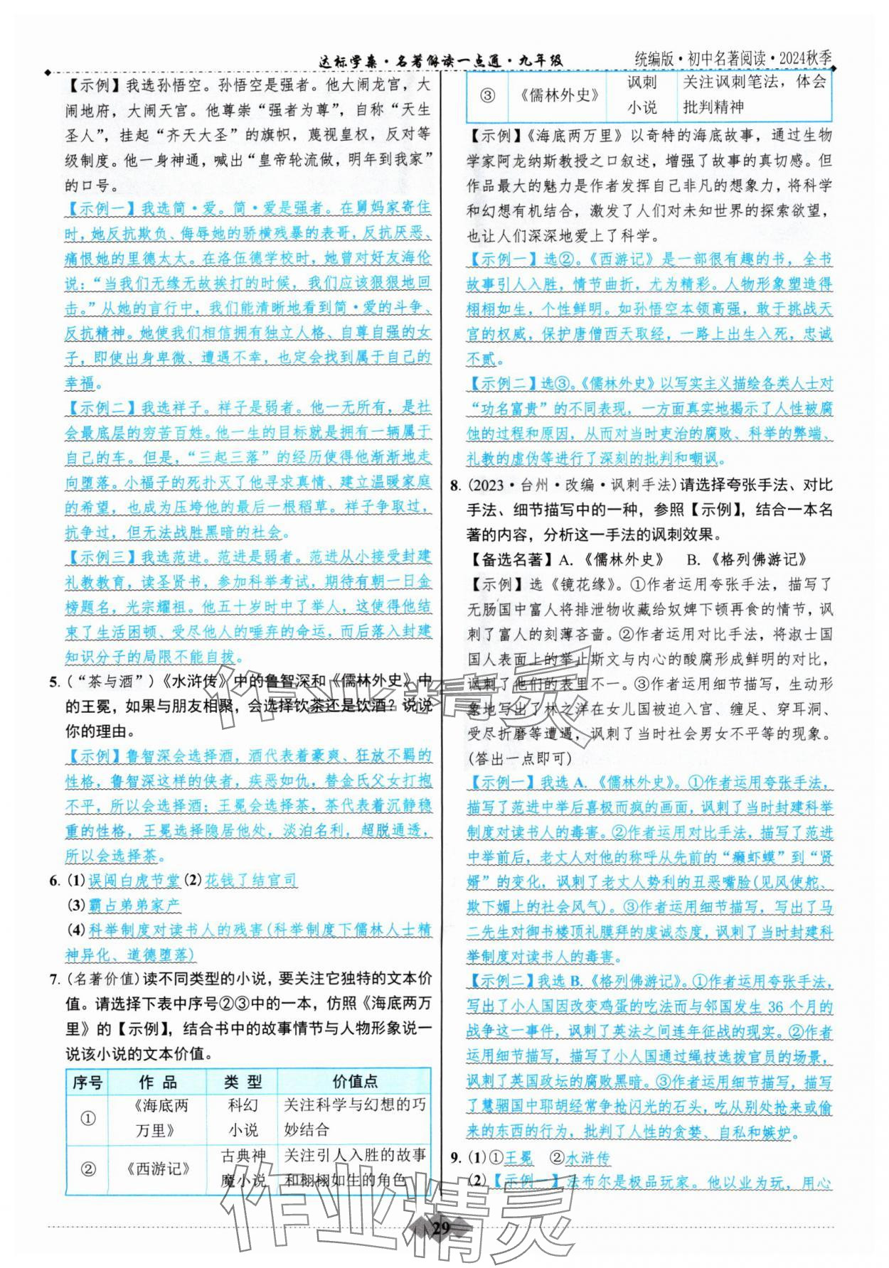 2024年达标学案名著解读一点通九年级语文全一册人教版