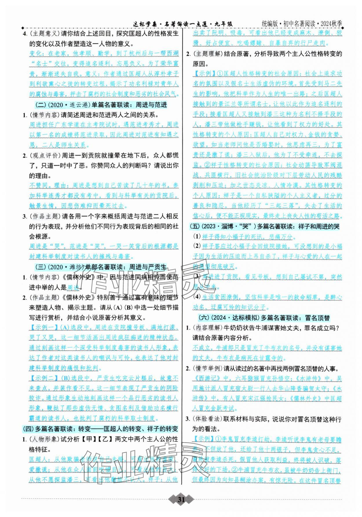注:目前有些书本章节名称可能整理的还不是很完善,但都是按照顺序排列的,请同学们按照顺序仔细查找。练习册 2024年达标学案名著解读一点通九年级语文全一册人教版 答案主要是用来给同学们做完题方便对答案用的,请勿直接抄袭。