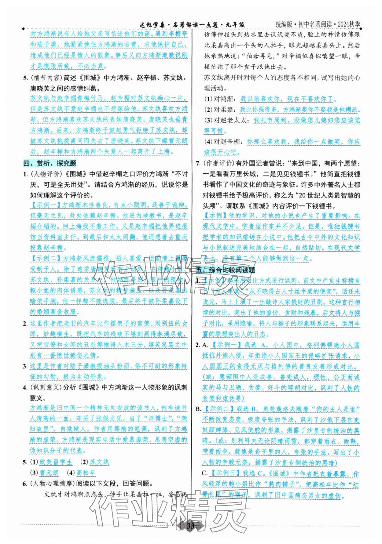 2024年达标学案名著解读一点通九年级语文全一册人教版