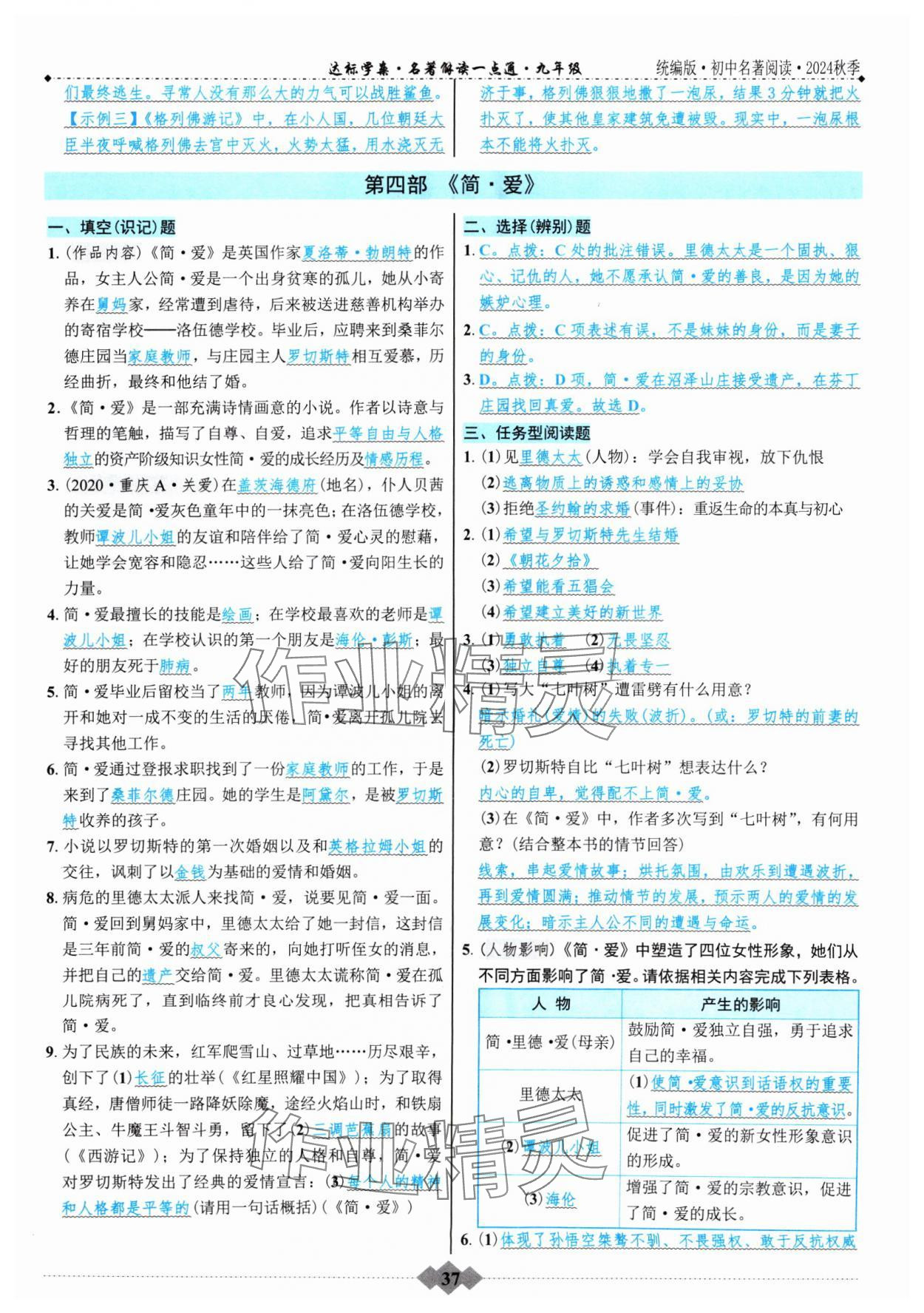 2024年达标学案名著解读一点通九年级语文全一册人教版