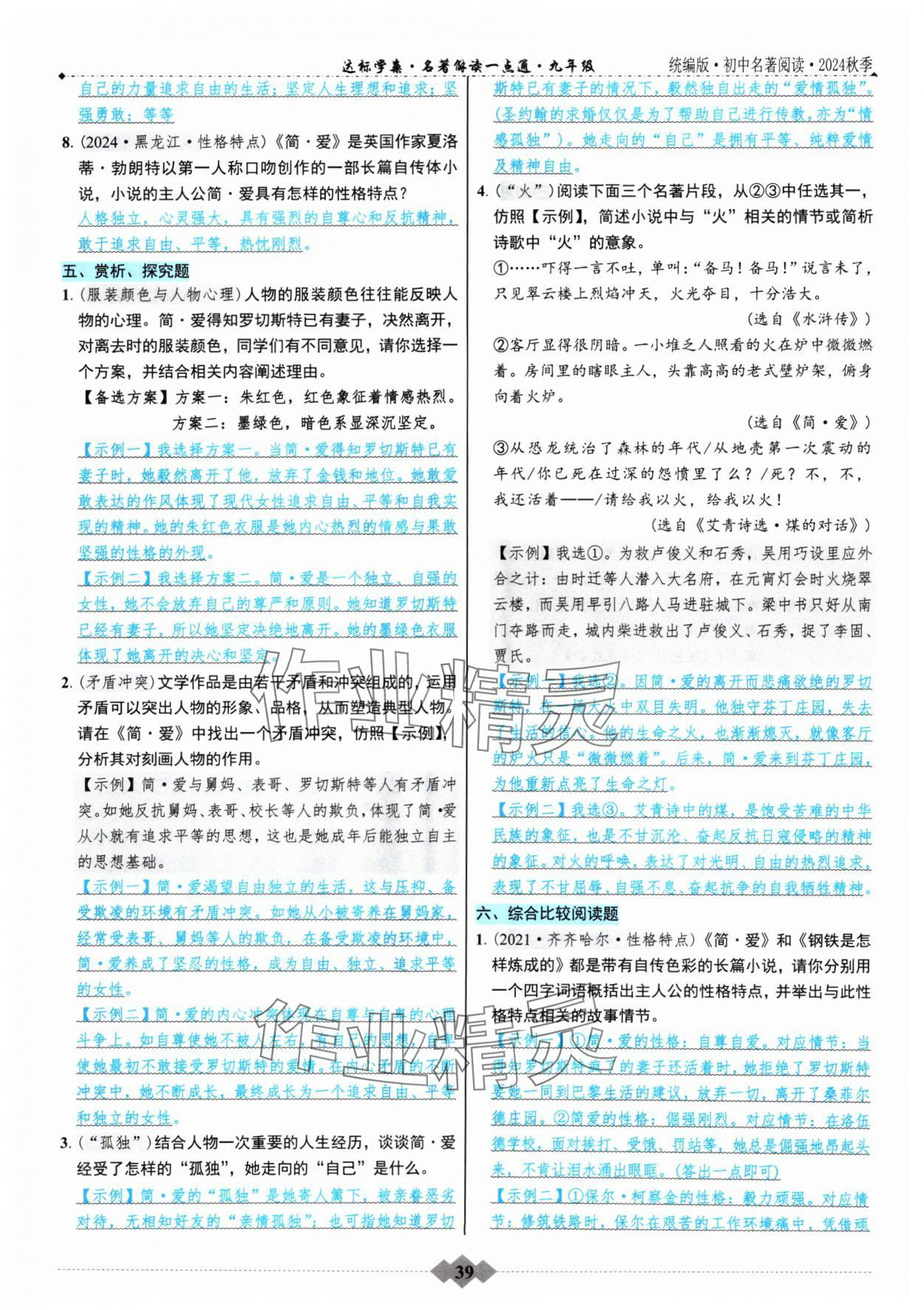 注:目前有些书本章节名称可能整理的还不是很完善,但都是按照顺序排列的,请同学们按照顺序仔细查找。练习册 2024年达标学案名著解读一点通九年级语文全一册人教版 答案主要是用来给同学们做完题方便对答案用的,请勿直接抄袭。