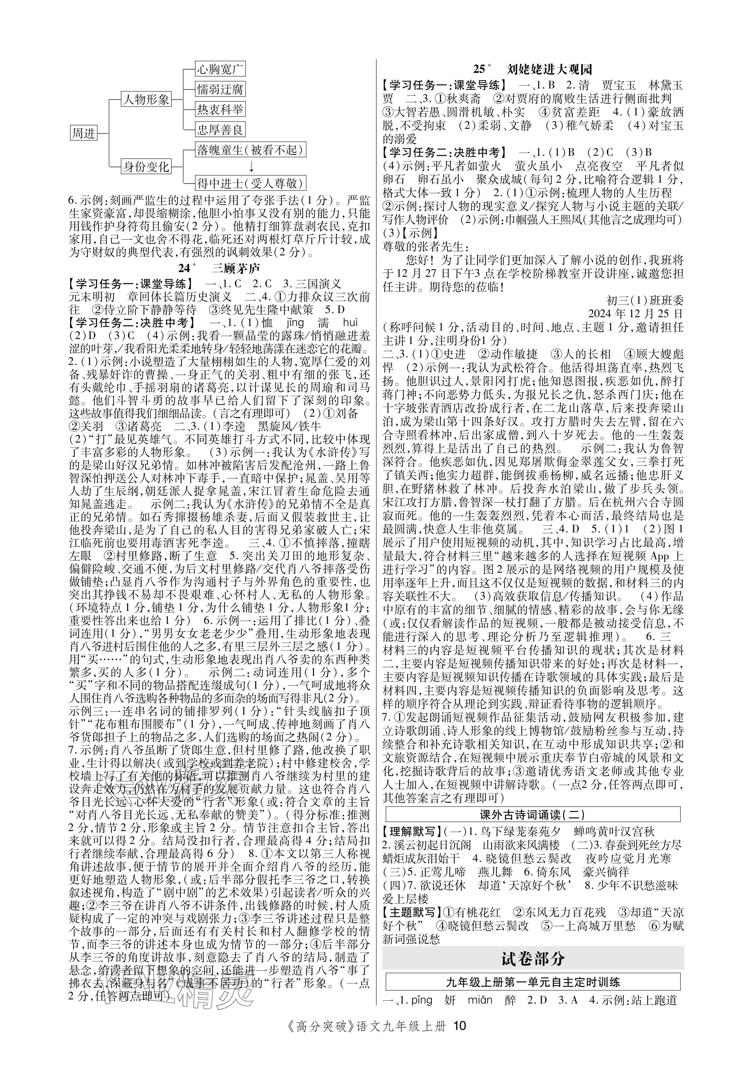 注:目前有些书本章节名称可能整理的还不是很完善,但都是按照顺序排列的,请同学们按照顺序仔细查找。练习册 2024年高分突破课时达标讲练测九年级语文上册人教版 答案主要是用来给同学们做完题方便对答案用的,请勿直接抄袭。