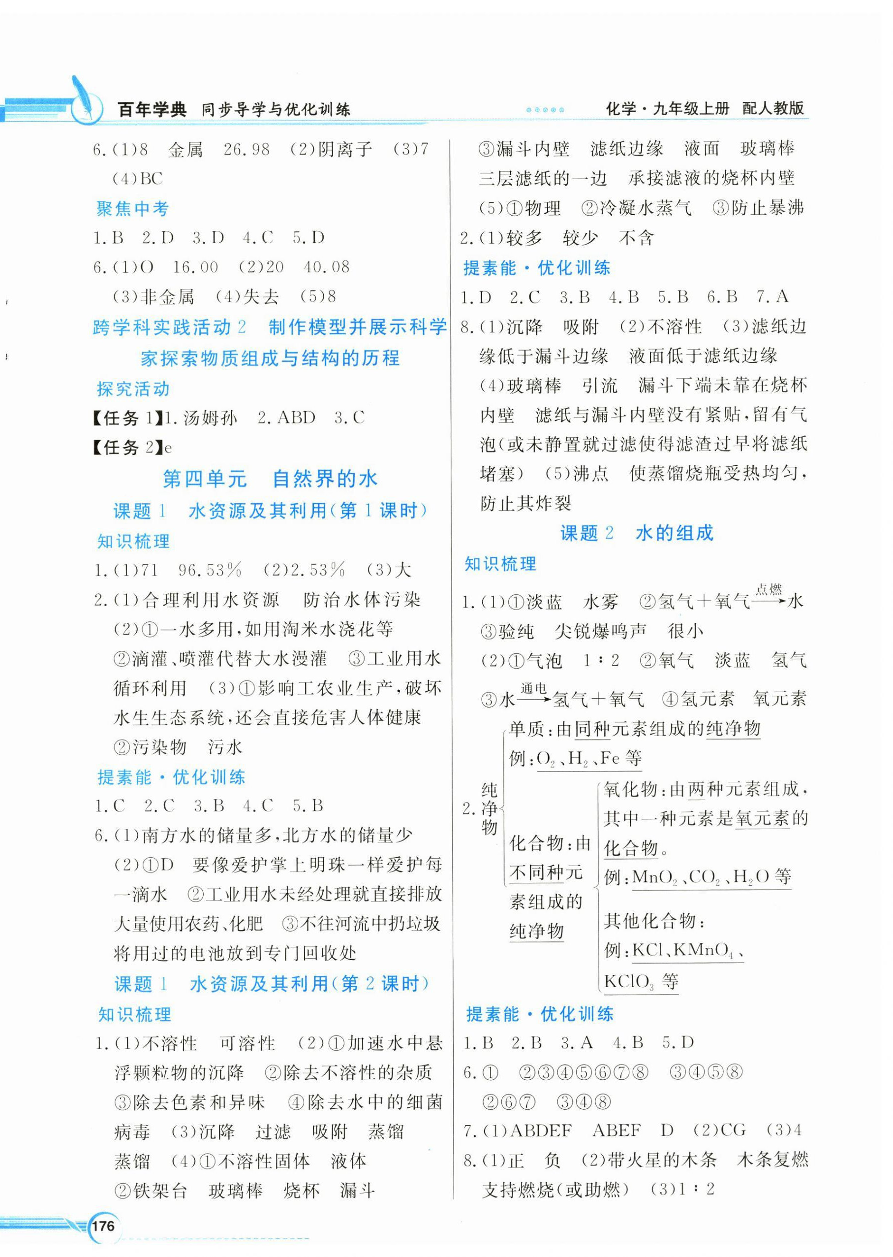 注:目前有些书本章节名称可能整理的还不是很完善,但都是按照顺序排列的,请同学们按照顺序仔细查找。练习册 2024年同步导学与优化训练九年级化学上册人教版 答案主要是用来给同学们做完题方便对答案用的,请勿直接抄袭。
