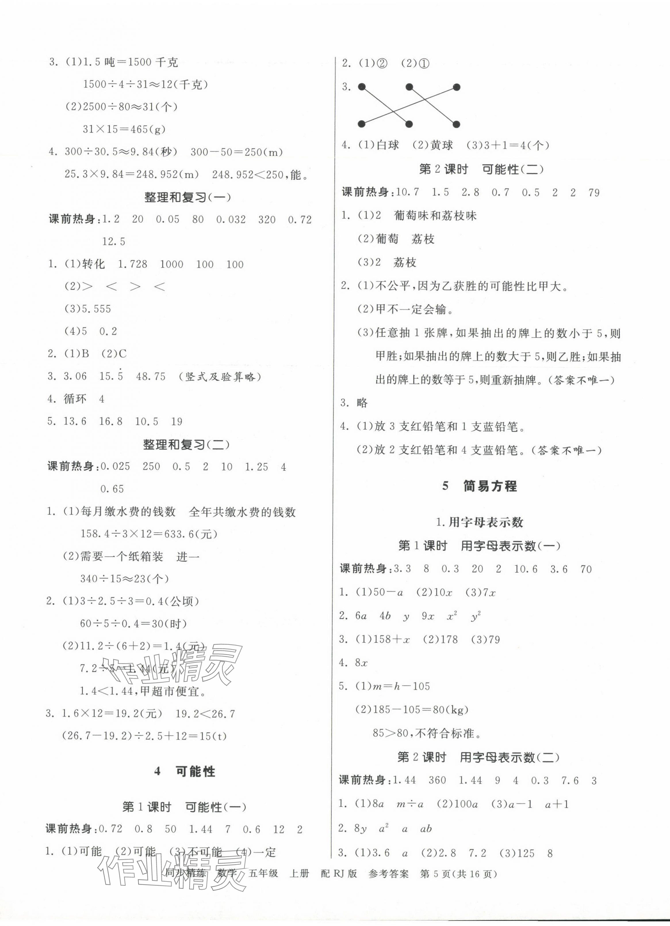 注:目前有些书本章节名称可能整理的还不是很完善,但都是按照顺序排列的,请同学们按照顺序仔细查找。练习册 2024年同步精练广东教育出版社五年级数学上册人教版 答案主要是用来给同学们做完题方便对答案用的,请勿直接抄袭。