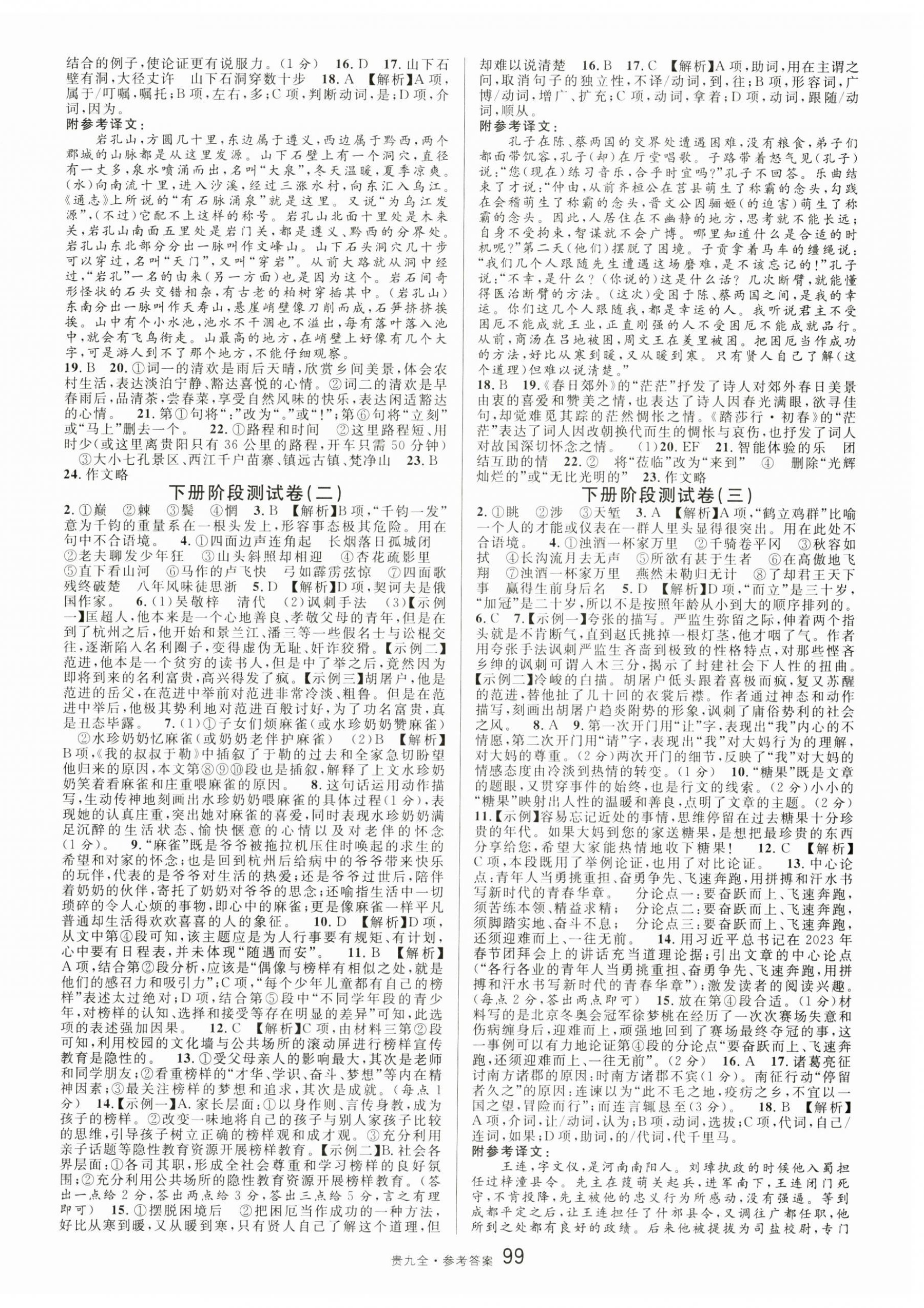 注:目前有些书本章节名称可能整理的还不是很完善,但都是按照顺序排列的,请同学们按照顺序仔细查找。练习册 2024年名校课堂九年级语文全一册人教版贵州专版 答案主要是用来给同学们做完题方便对答案用的,请勿直接抄袭。