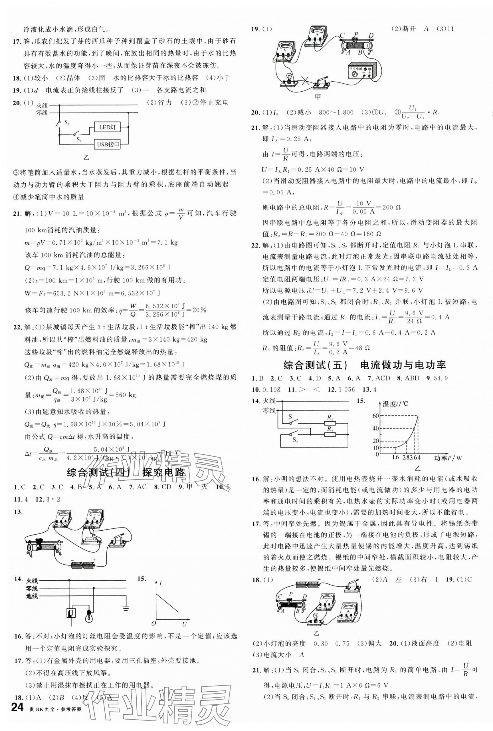 注:目前有些书本章节名称可能整理的还不是很完善,但都是按照顺序排列的,请同学们按照顺序仔细查找。练习册 2024年名校课堂九年级物理全一册沪科版贵州专版 答案主要是用来给同学们做完题方便对答案用的,请勿直接抄袭。