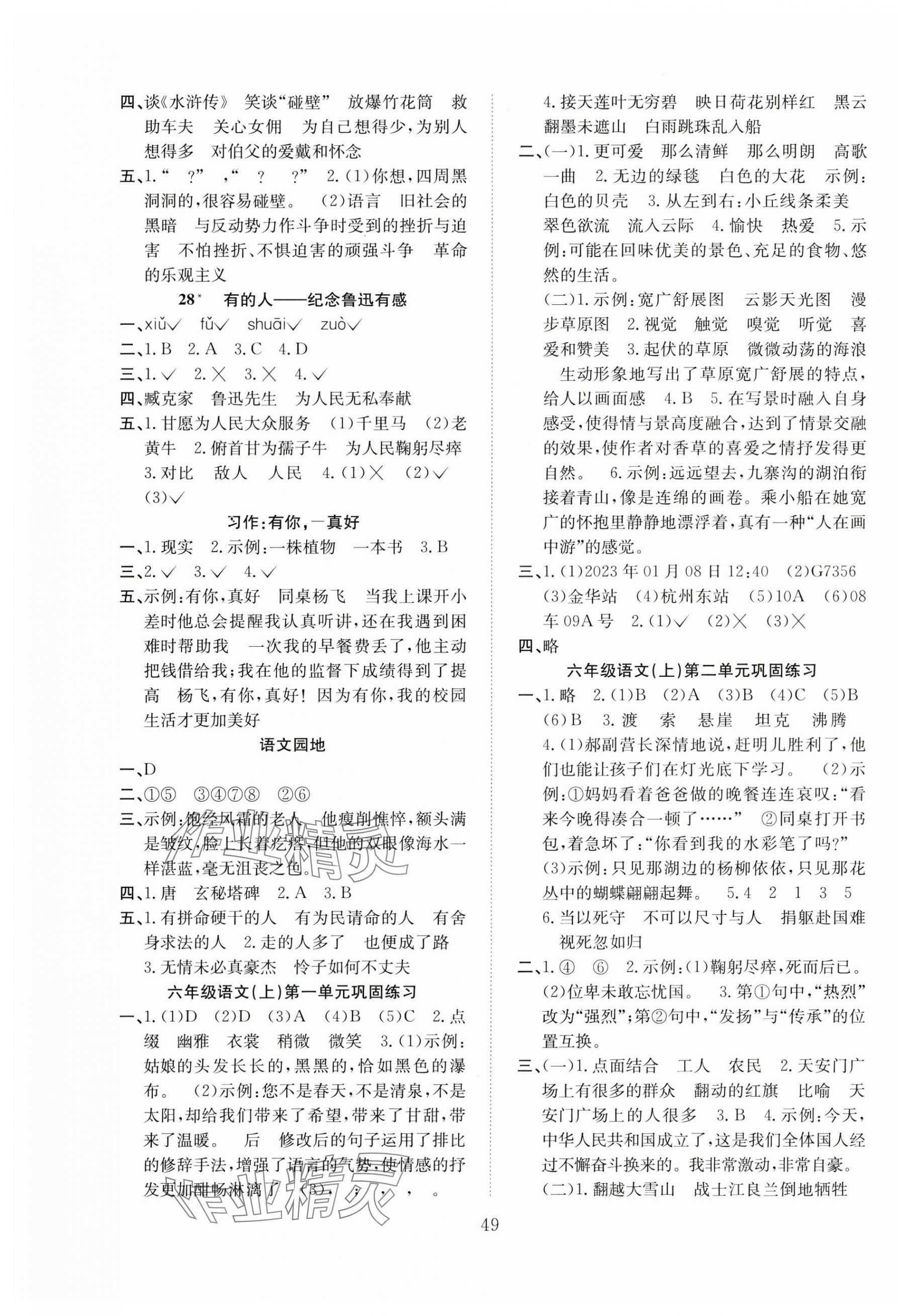 注:目前有些书本章节名称可能整理的还不是很完善,但都是按照顺序排列的,请同学们按照顺序仔细查找。练习册 2024年新经典练与测六年级语文上册人教版 答案主要是用来给同学们做完题方便对答案用的,请勿直接抄袭。