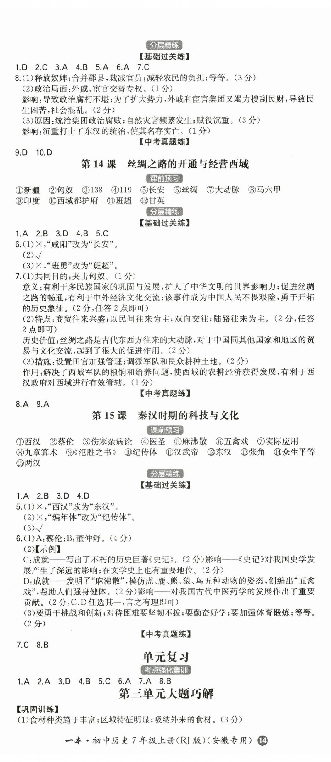 注:目前有些书本章节名称可能整理的还不是很完善,但都是按照顺序排列的,请同学们按照顺序仔细查找。练习册 2024年一本七年级历史上册人教版安徽专版 答案主要是用来给同学们做完题方便对答案用的,请勿直接抄袭。