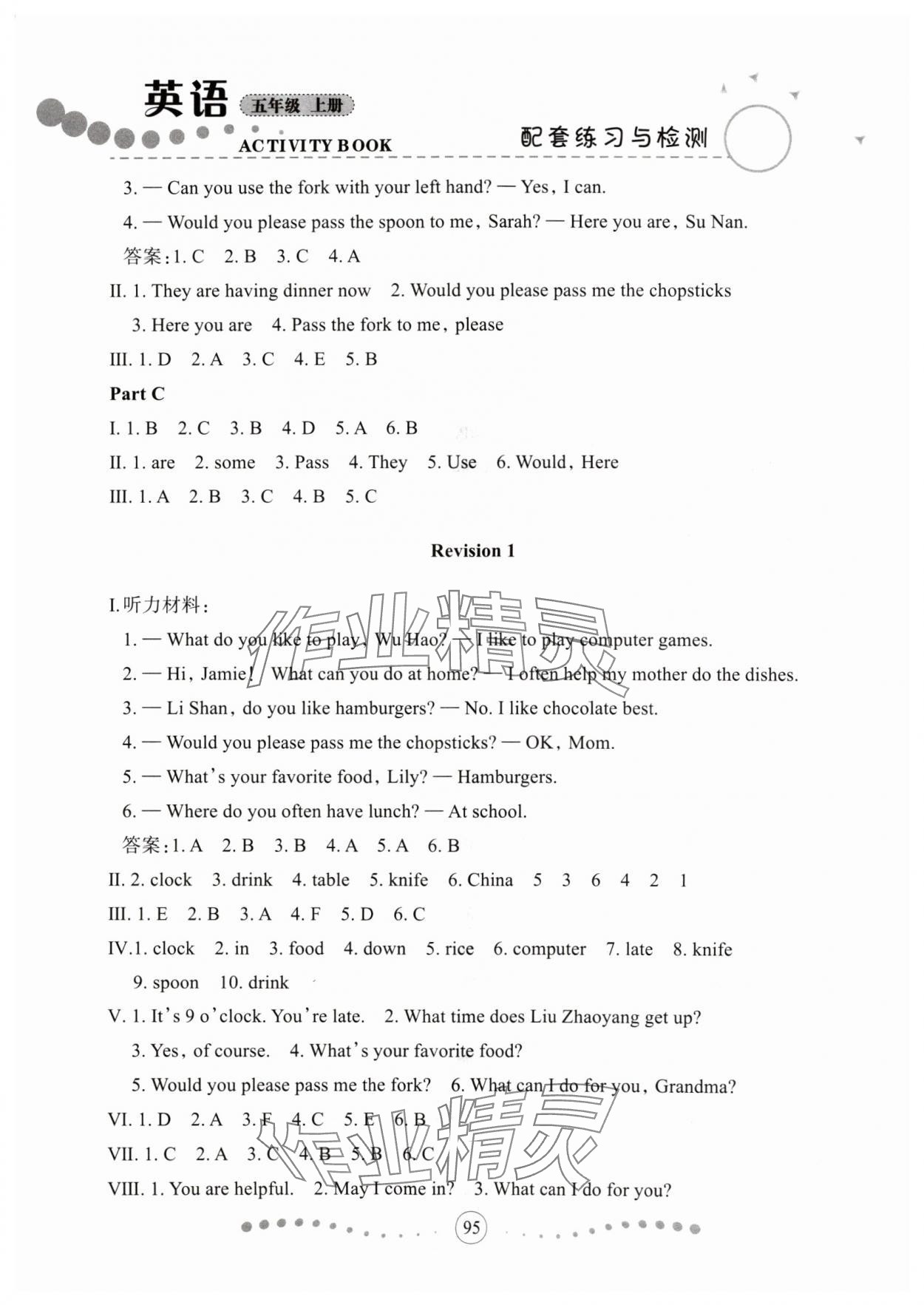 注:目前有些书本章节名称可能整理的还不是很完善,但都是按照顺序排列的,请同学们按照顺序仔细查找。练习册 2024年配套练习与检测五年级英语上册陕旅版 答案主要是用来给同学们做完题方便对答案用的,请勿直接抄袭。