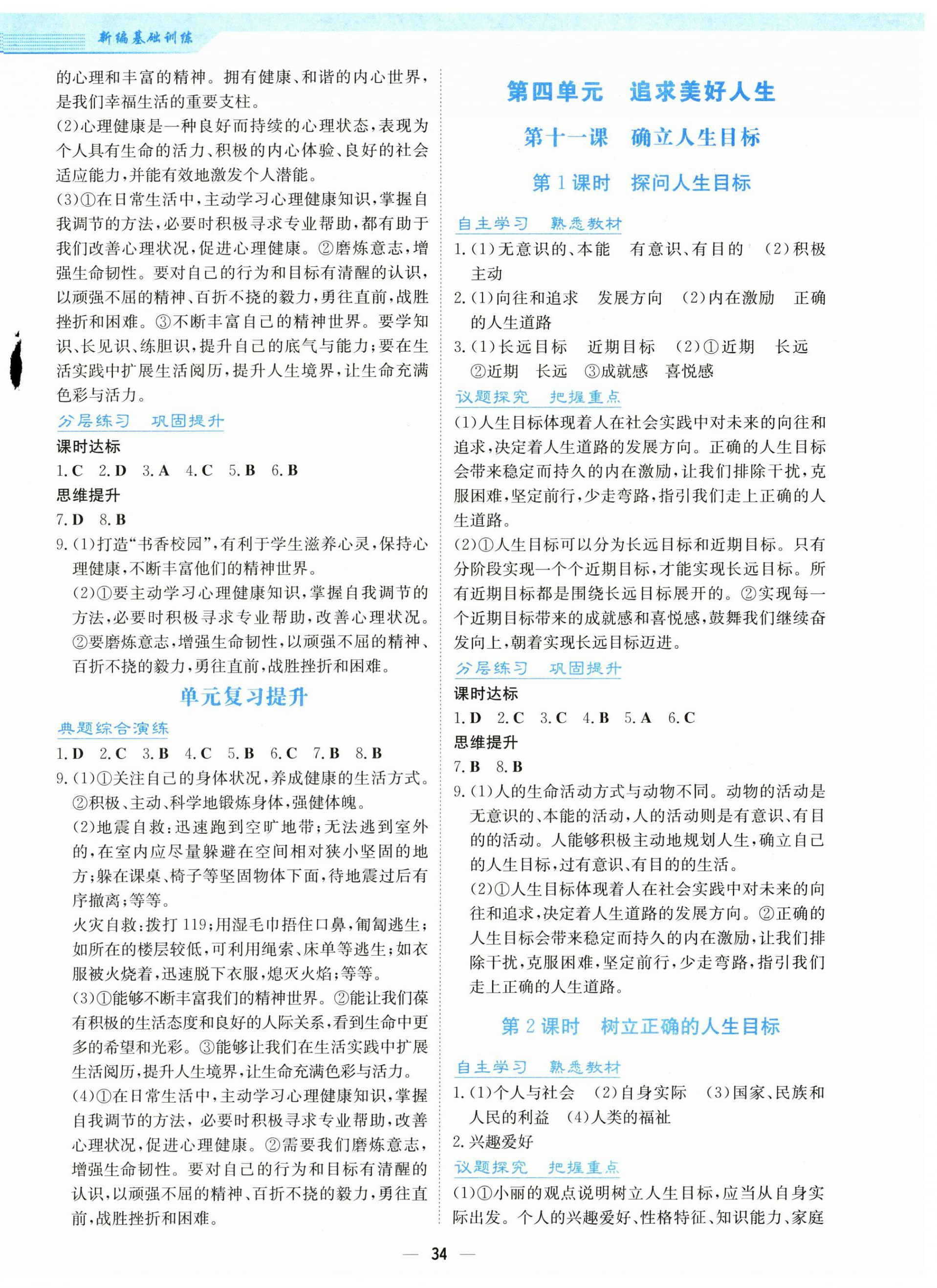 注:目前有些书本章节名称可能整理的还不是很完善,但都是按照顺序排列的,请同学们按照顺序仔细查找。练习册 2024年新编基础训练七年级道德与法治上册人教版 答案主要是用来给同学们做完题方便对答案用的,请勿直接抄袭。