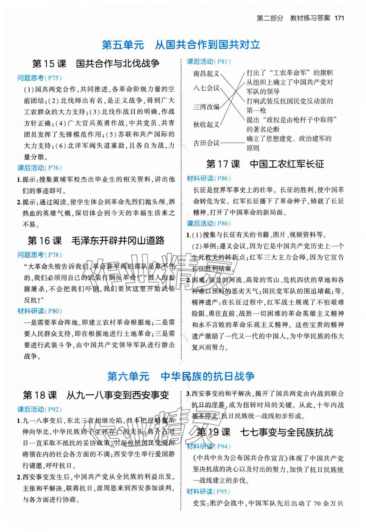 注:目前有些书本章节名称可能整理的还不是很完善,但都是按照顺序排列的,请同学们按照顺序仔细查找。练习册 2024年教材课本八年级历史上册人教版 答案主要是用来给同学们做完题方便对答案用的,请勿直接抄袭。