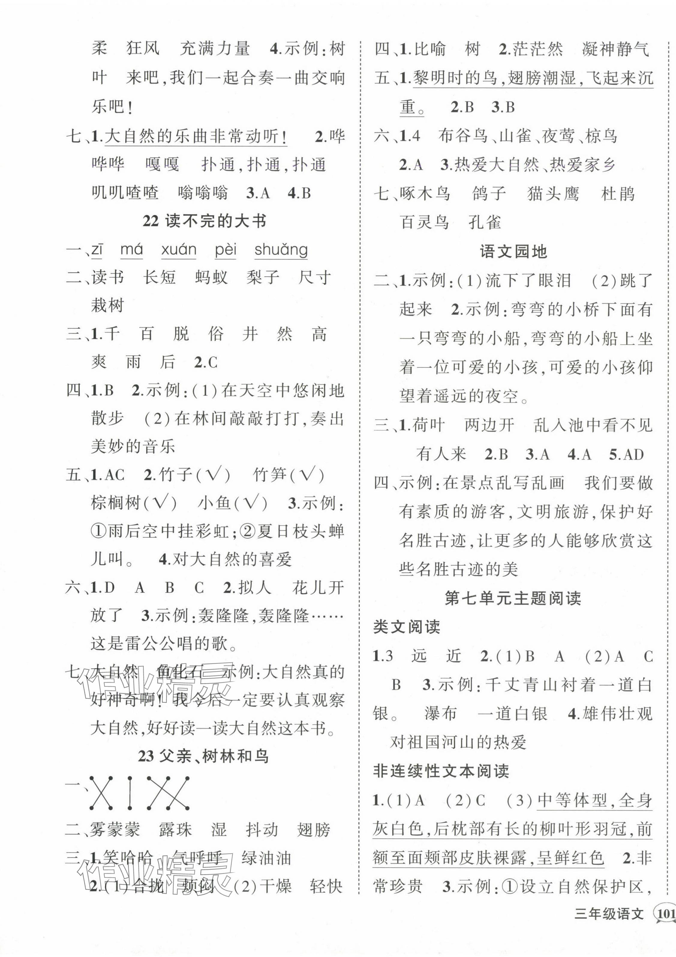 注:目前有些书本章节名称可能整理的还不是很完善,但都是按照顺序排列的,请同学们按照顺序仔细查找。练习册 2024年状元成才路创优作业100分三年级语文上册人教版广东专版 答案主要是用来给同学们做完题方便对答案用的,请勿直接抄袭。