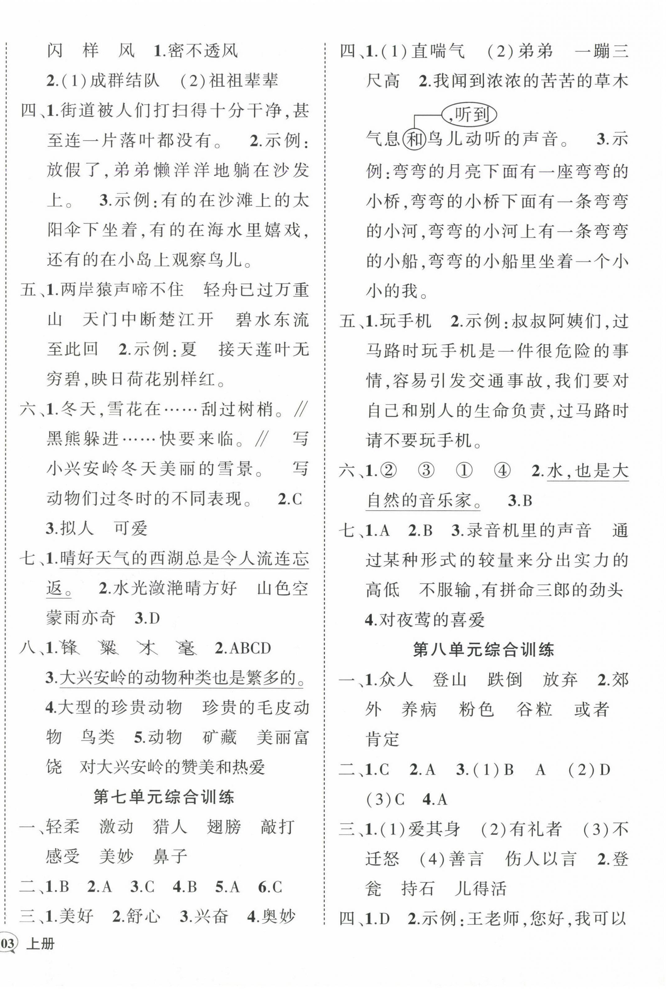 注:目前有些书本章节名称可能整理的还不是很完善,但都是按照顺序排列的,请同学们按照顺序仔细查找。练习册 2024年状元成才路创优作业100分三年级语文上册人教版广东专版 答案主要是用来给同学们做完题方便对答案用的,请勿直接抄袭。