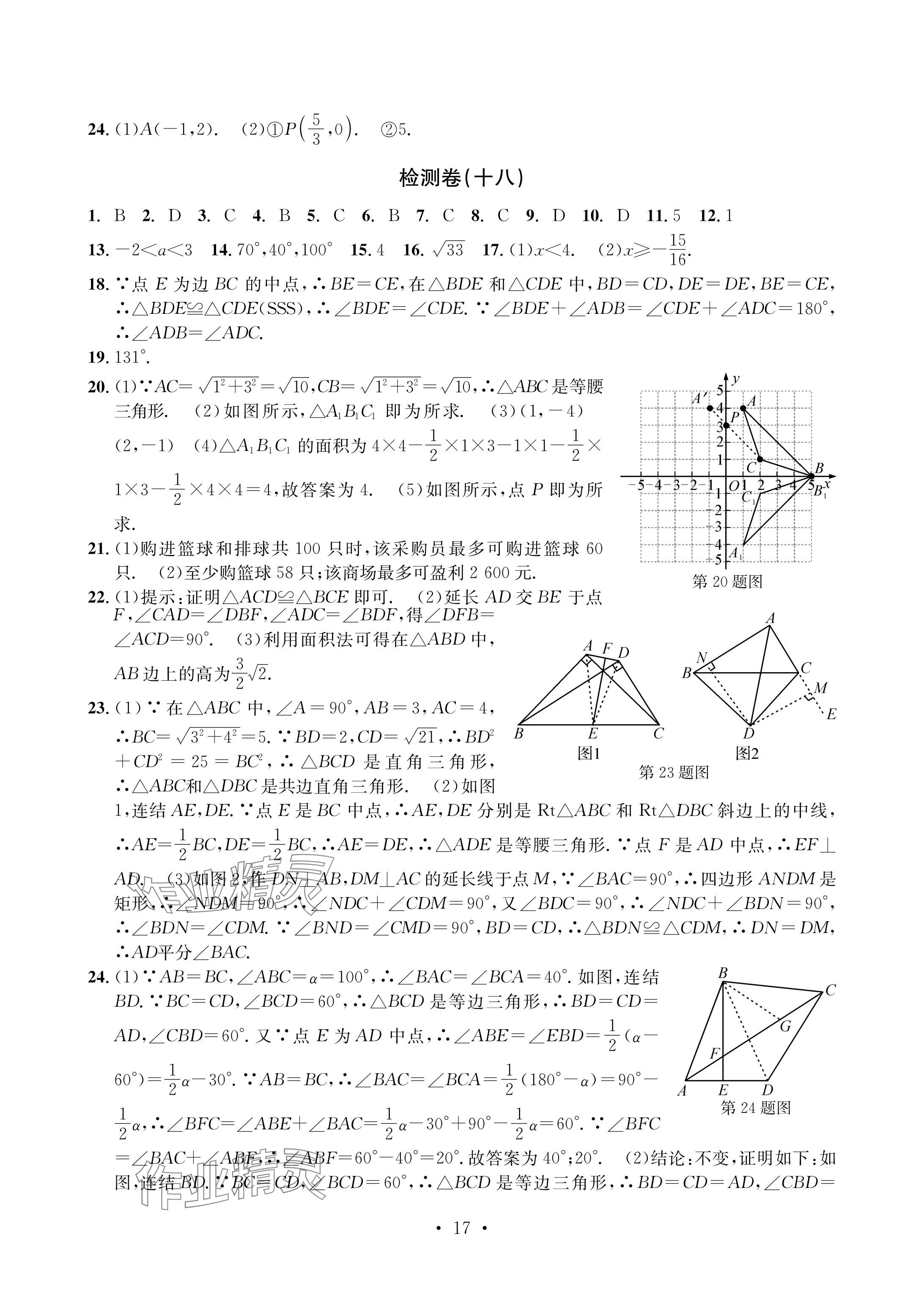 注:目前有些书本章节名称可能整理的还不是很完善,但都是按照顺序排列的,请同学们按照顺序仔细查找。练习册 2024年习题e百检测卷八年级数学上册浙教版 答案主要是用来给同学们做完题方便对答案用的,请勿直接抄袭。