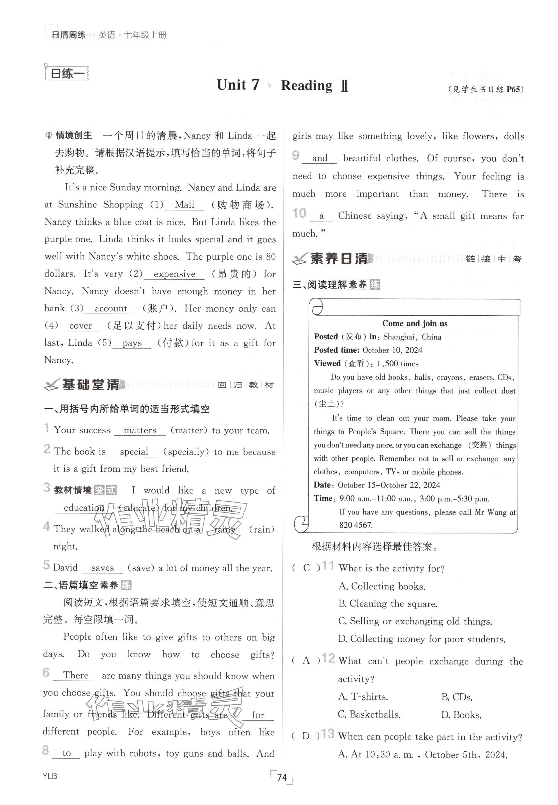 - 参考答案第74页