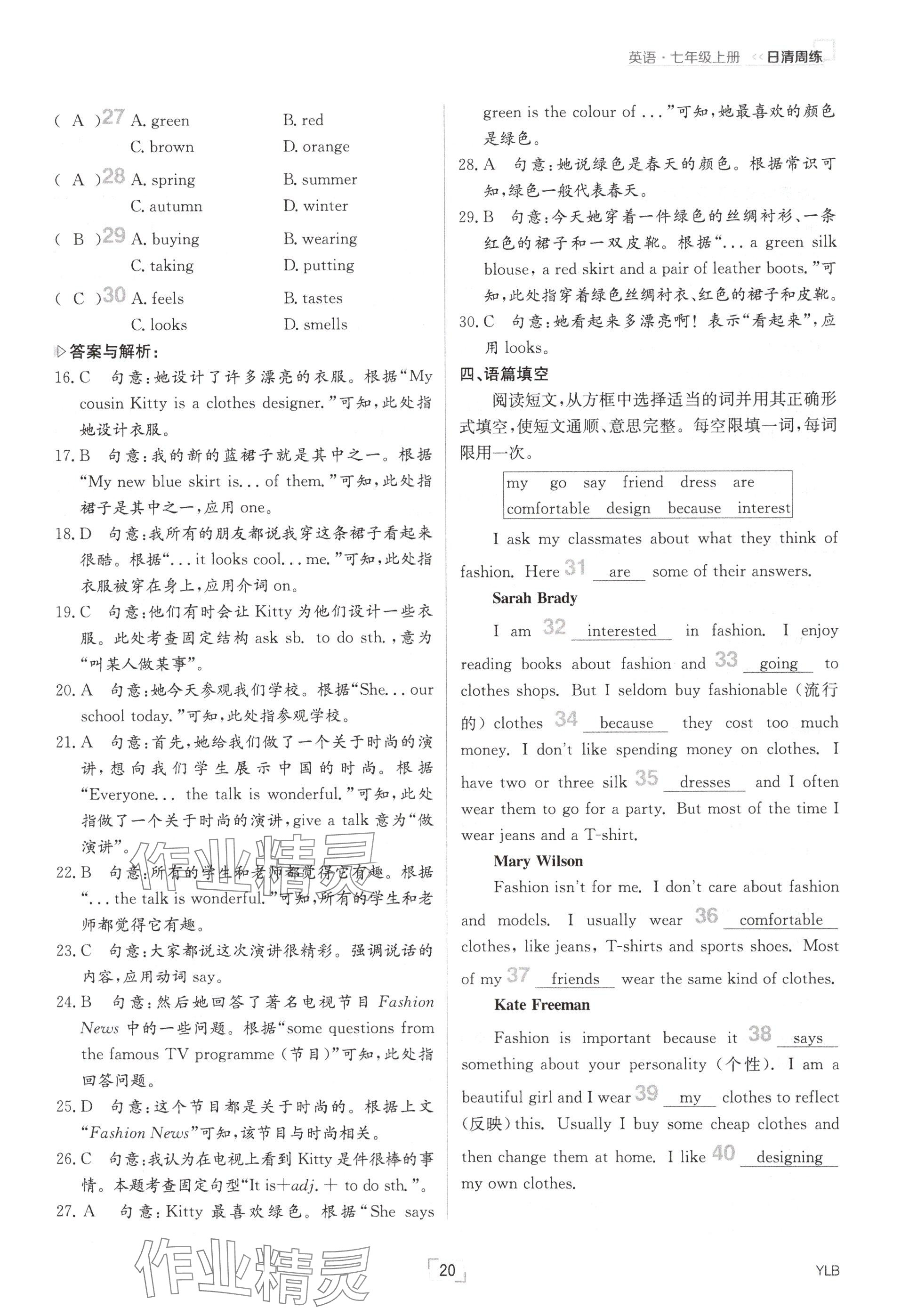 注:目前有些书本章节名称可能整理的还不是很完善,但都是按照顺序排列的,请同学们按照顺序仔细查找。练习册 2024年日清周练七年级英语上册译林版 答案主要是用来给同学们做完题方便对答案用的,请勿直接抄袭。