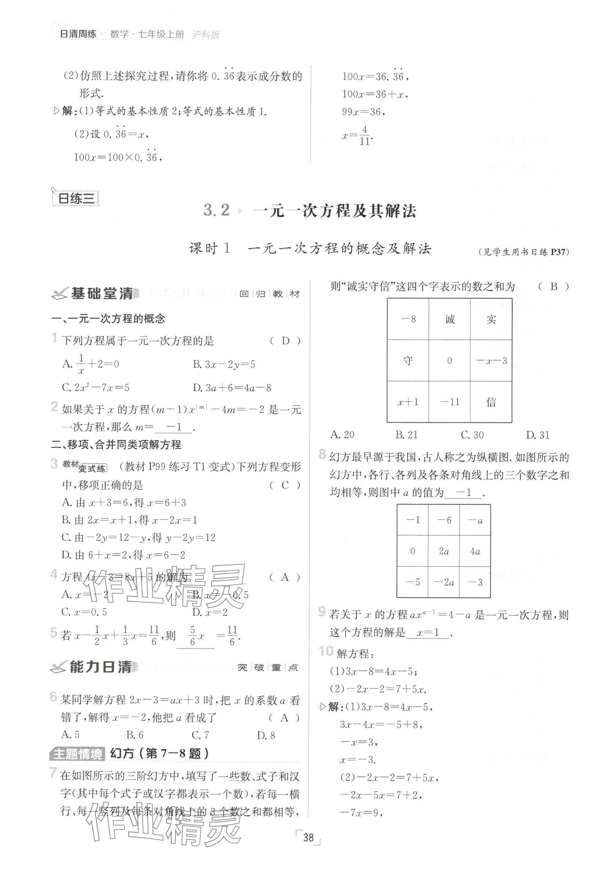 注:目前有些书本章节名称可能整理的还不是很完善,但都是按照顺序排列的,请同学们按照顺序仔细查找。练习册 2024年日清周练七年级数学上册沪科版 答案主要是用来给同学们做完题方便对答案用的,请勿直接抄袭。