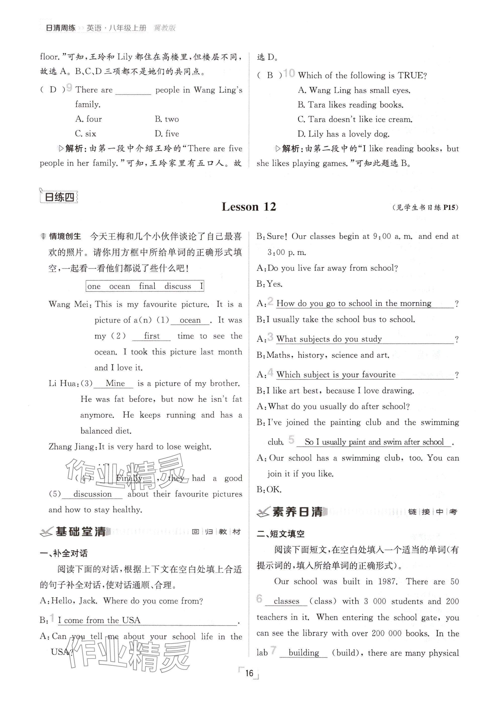 注:目前有些书本章节名称可能整理的还不是很完善,但都是按照顺序排列的,请同学们按照顺序仔细查找。练习册 2024年日清周练八年级英语上册冀教版 答案主要是用来给同学们做完题方便对答案用的,请勿直接抄袭。