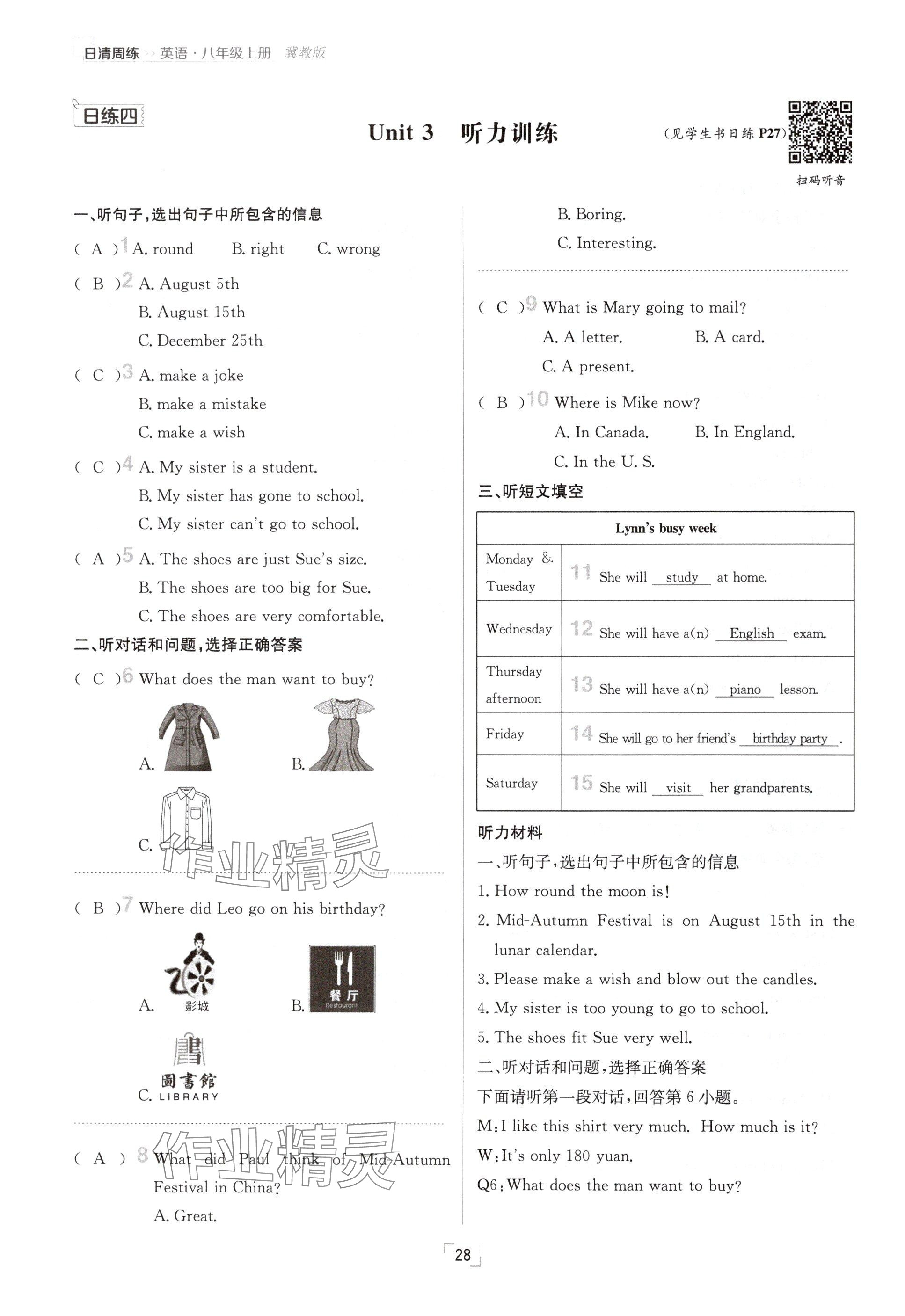 注:目前有些书本章节名称可能整理的还不是很完善,但都是按照顺序排列的,请同学们按照顺序仔细查找。练习册 2024年日清周练八年级英语上册冀教版 答案主要是用来给同学们做完题方便对答案用的,请勿直接抄袭。