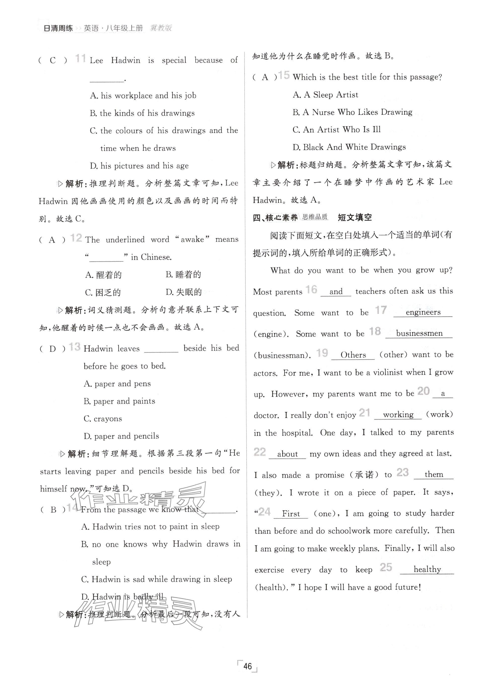 注:目前有些书本章节名称可能整理的还不是很完善,但都是按照顺序排列的,请同学们按照顺序仔细查找。练习册 2024年日清周练八年级英语上册冀教版 答案主要是用来给同学们做完题方便对答案用的,请勿直接抄袭。