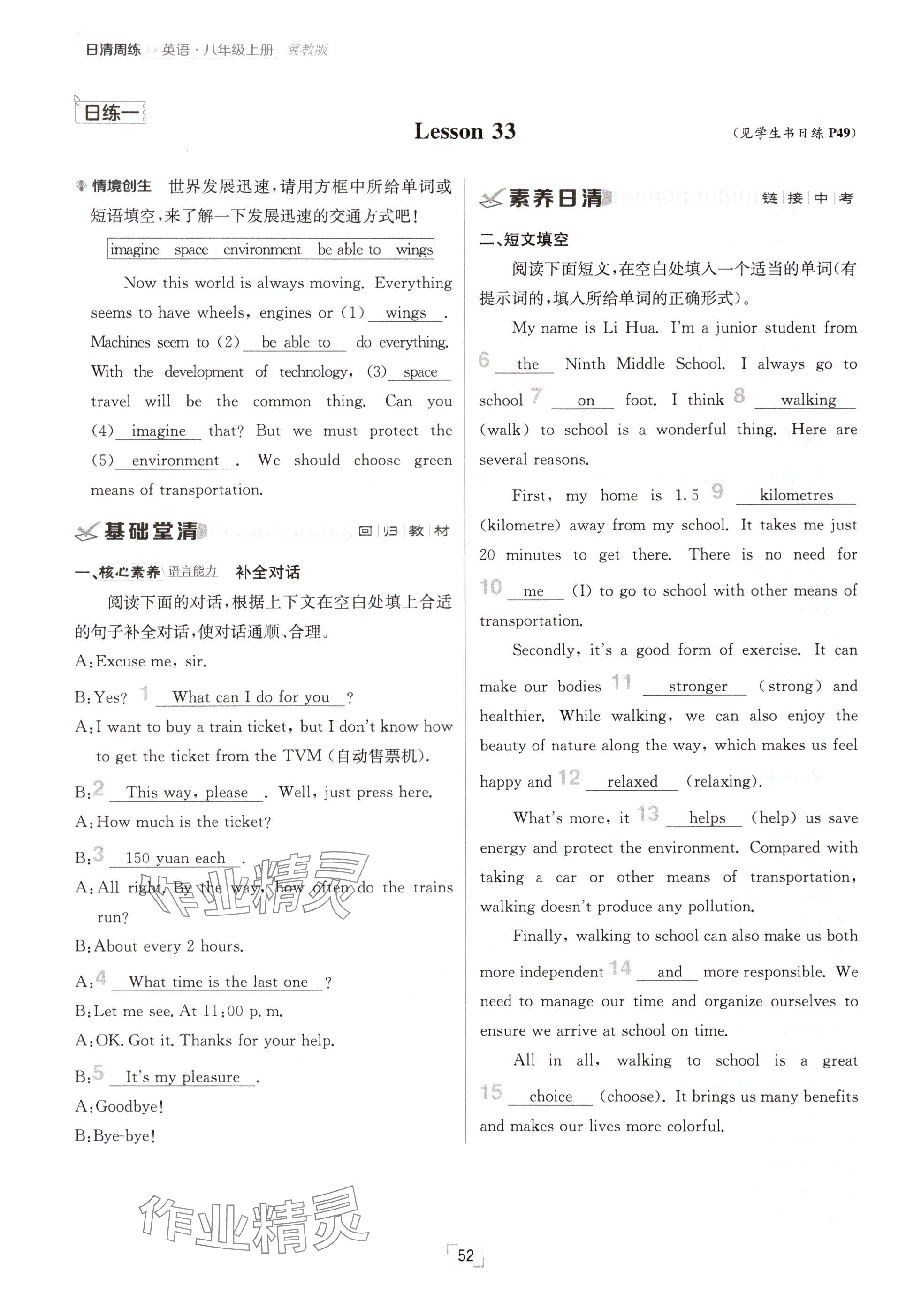 注:目前有些书本章节名称可能整理的还不是很完善,但都是按照顺序排列的,请同学们按照顺序仔细查找。练习册 2024年日清周练八年级英语上册冀教版 答案主要是用来给同学们做完题方便对答案用的,请勿直接抄袭。