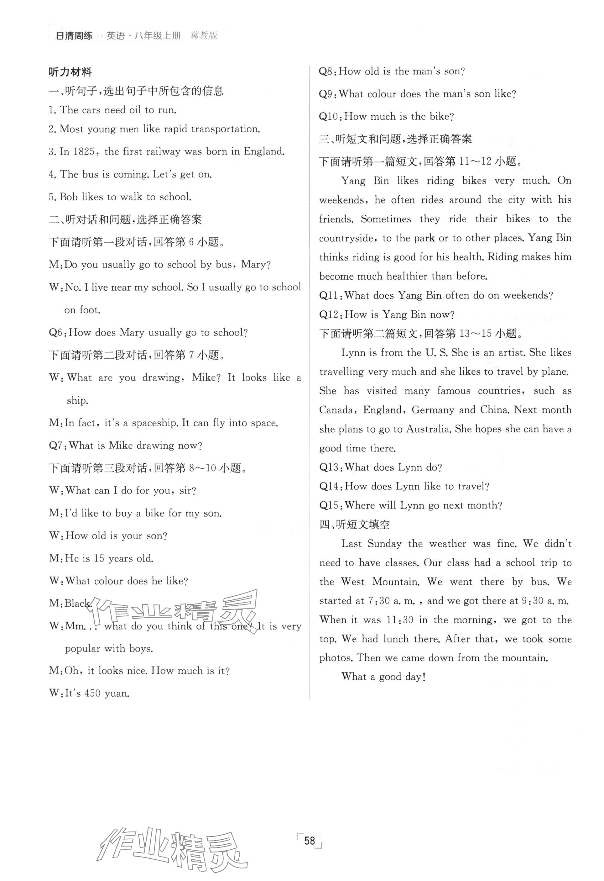 注:目前有些书本章节名称可能整理的还不是很完善,但都是按照顺序排列的,请同学们按照顺序仔细查找。练习册 2024年日清周练八年级英语上册冀教版 答案主要是用来给同学们做完题方便对答案用的,请勿直接抄袭。