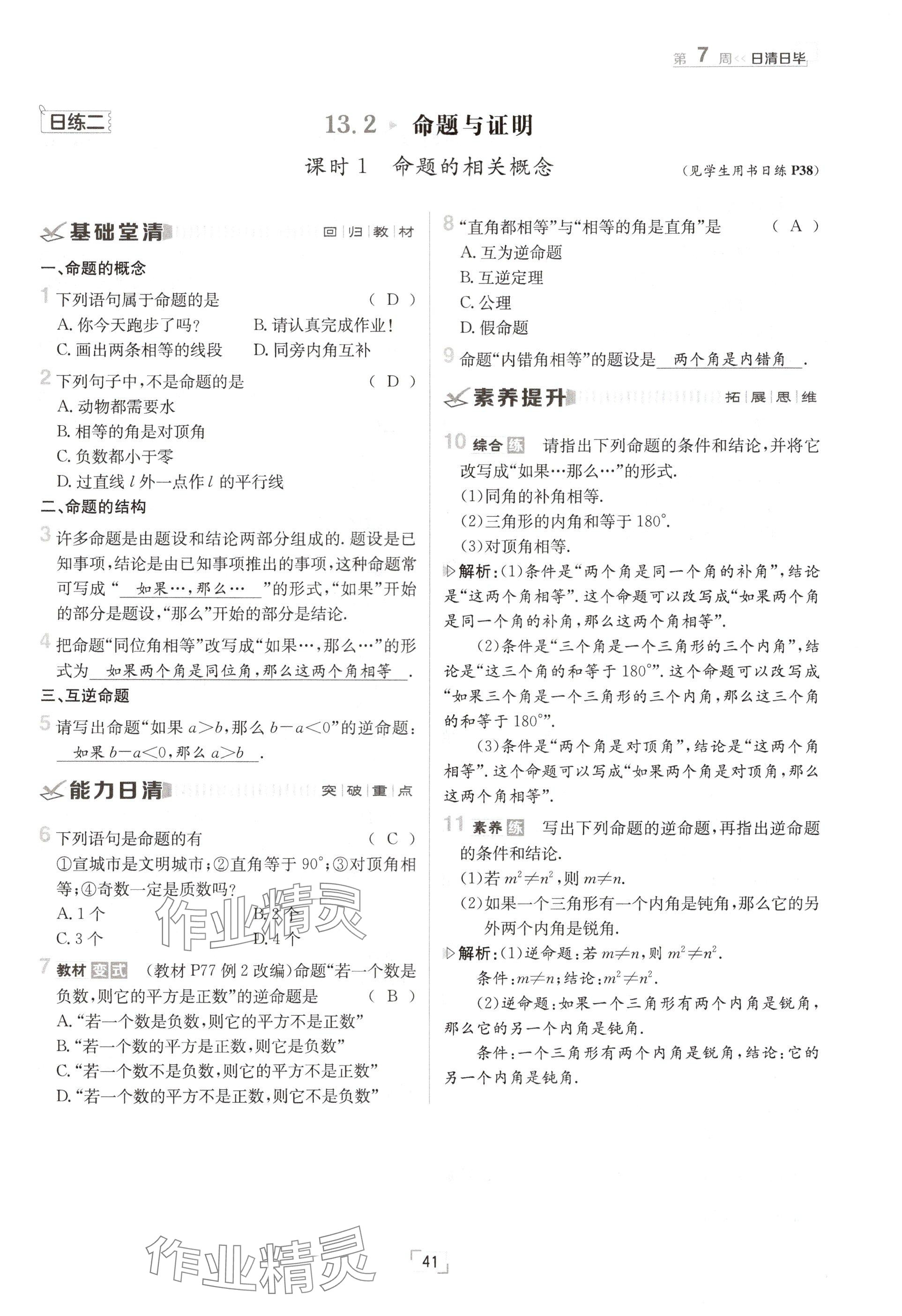 注:目前有些书本章节名称可能整理的还不是很完善,但都是按照顺序排列的,请同学们按照顺序仔细查找。练习册 2024年日清周练八年级数学上册沪科版 答案主要是用来给同学们做完题方便对答案用的,请勿直接抄袭。