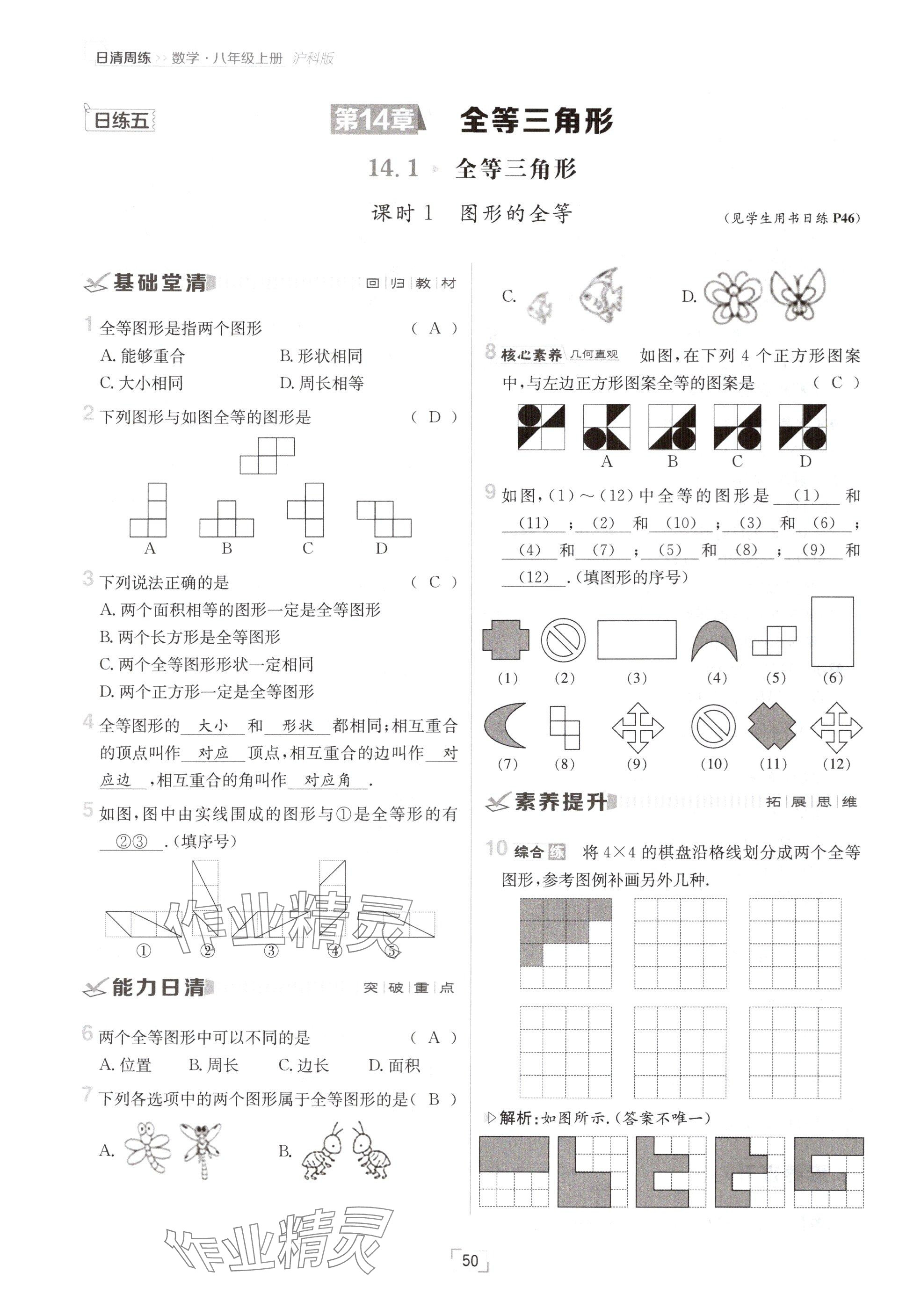 注:目前有些书本章节名称可能整理的还不是很完善,但都是按照顺序排列的,请同学们按照顺序仔细查找。练习册 2024年日清周练八年级数学上册沪科版 答案主要是用来给同学们做完题方便对答案用的,请勿直接抄袭。