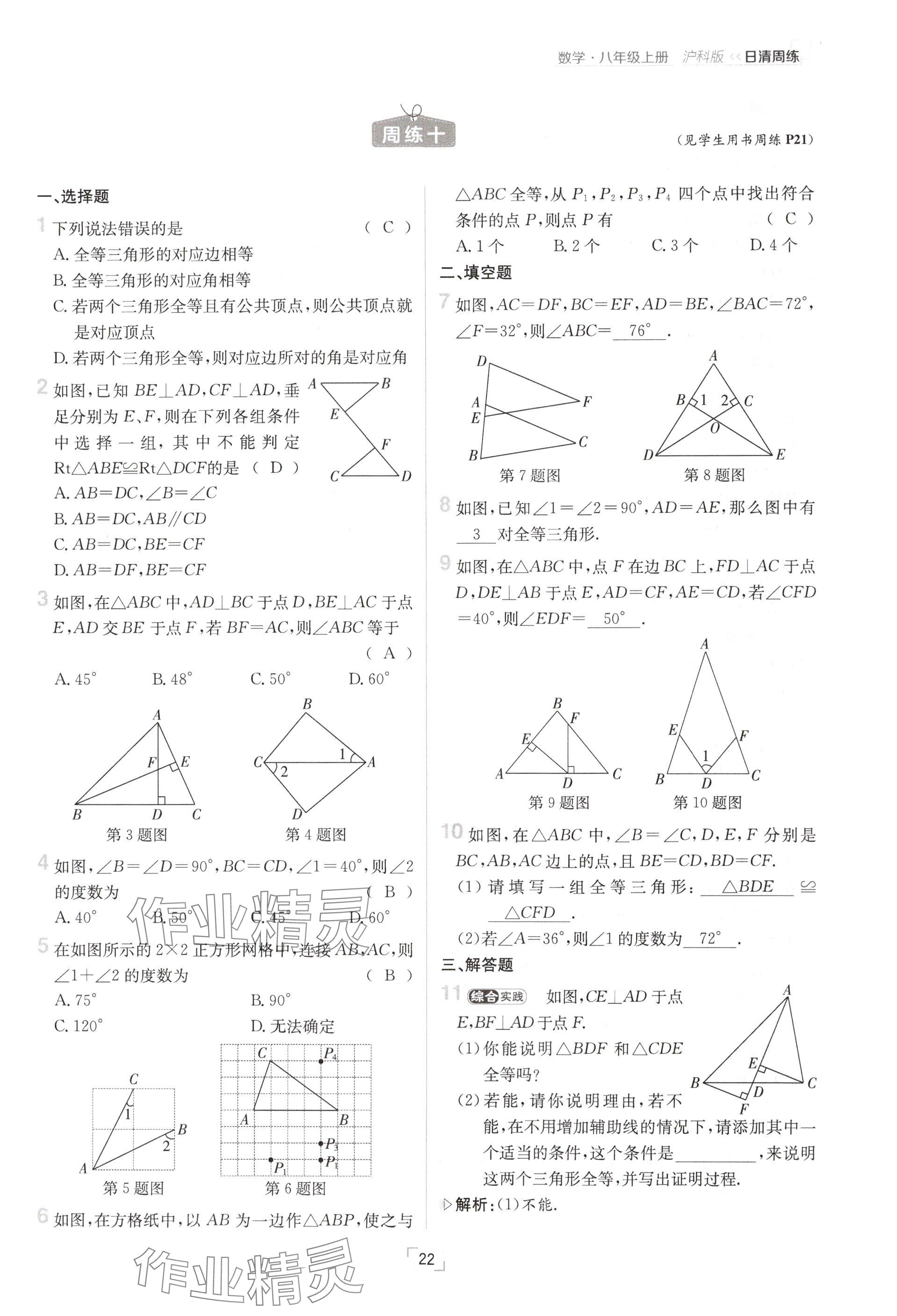 注:目前有些书本章节名称可能整理的还不是很完善,但都是按照顺序排列的,请同学们按照顺序仔细查找。练习册 2024年日清周练八年级数学上册沪科版 答案主要是用来给同学们做完题方便对答案用的,请勿直接抄袭。